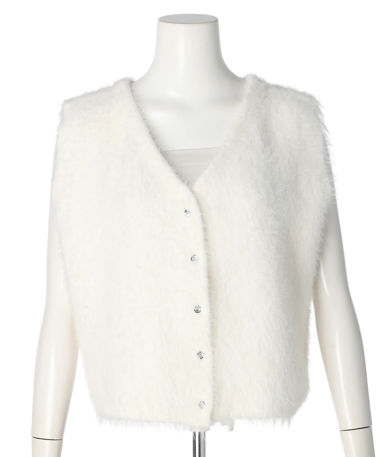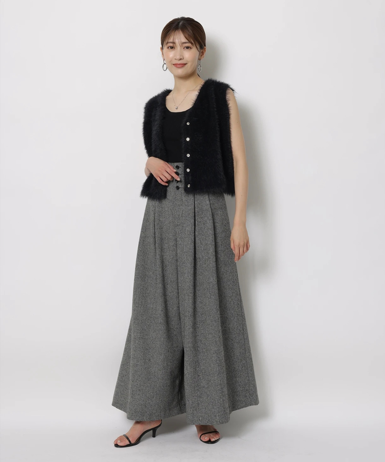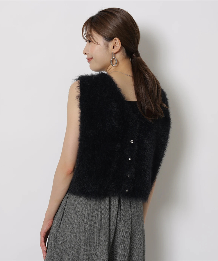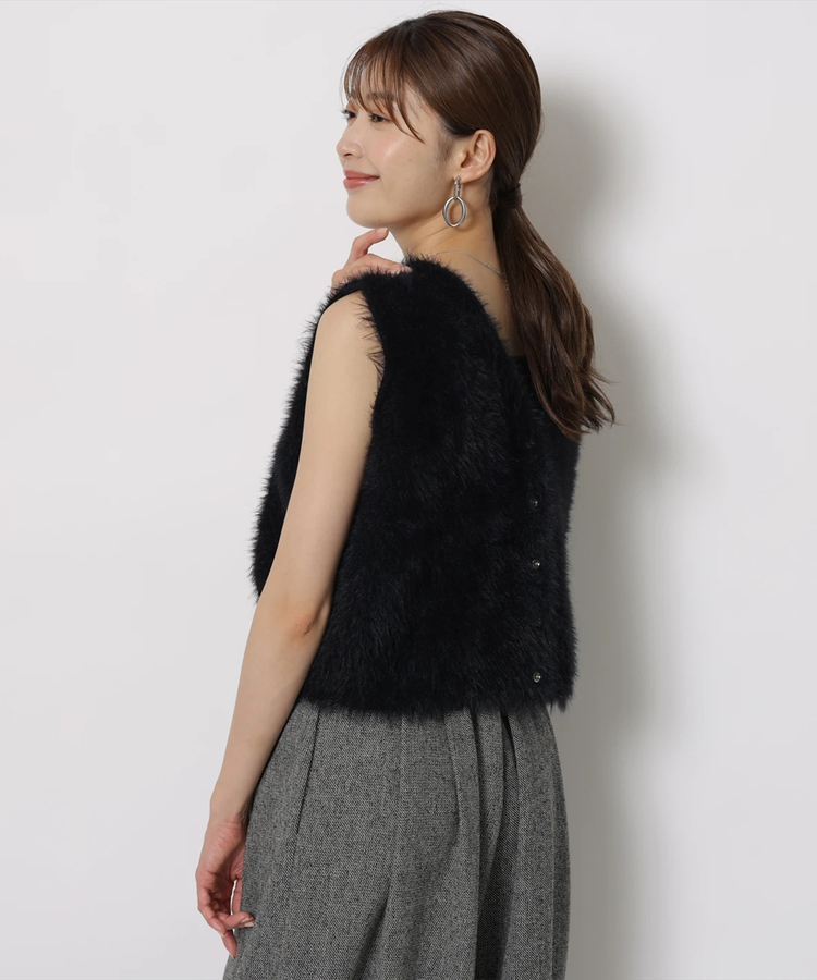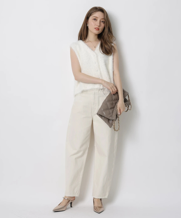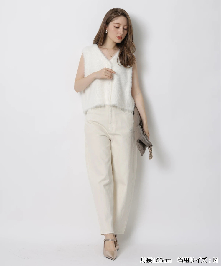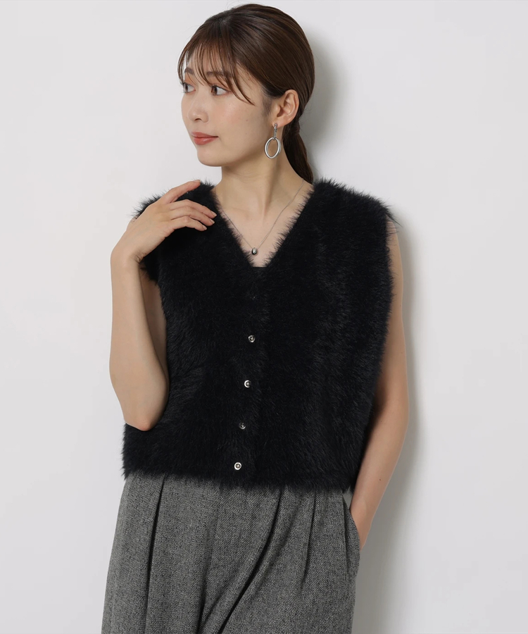 装いを華やかな印象に見せてくれる存在感も魅力です。Vネックにすることで首や顔のラインをすっきりと綺麗に見せてくれるのも嬉しいポイント◎