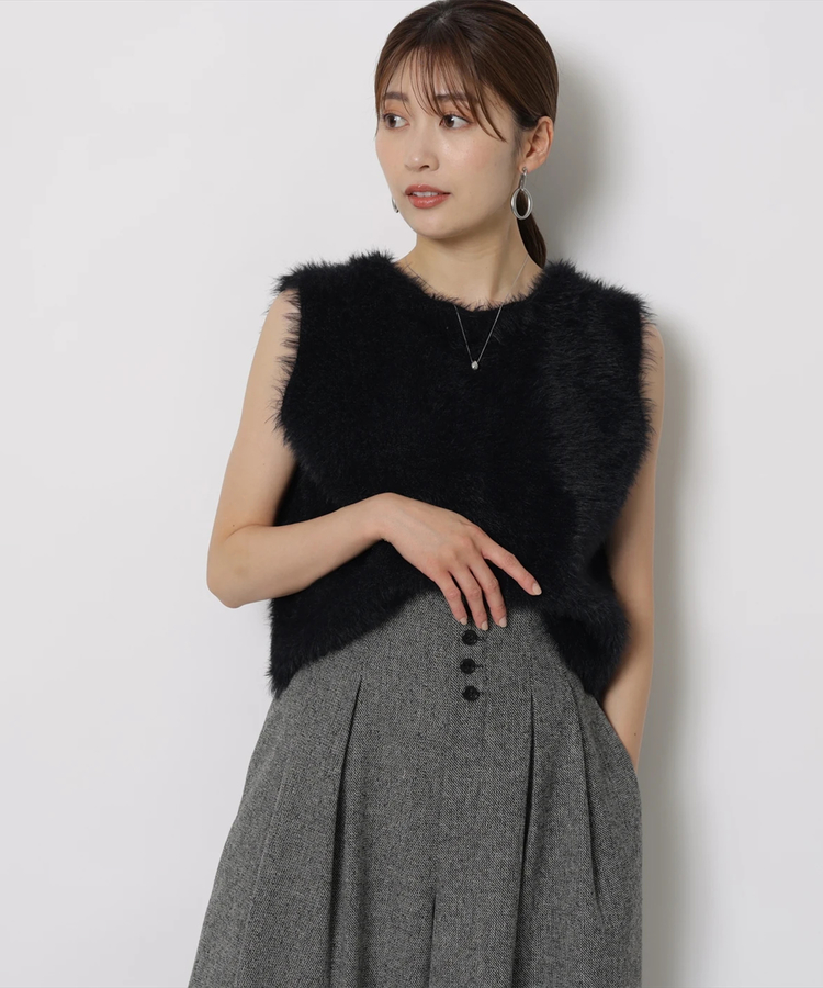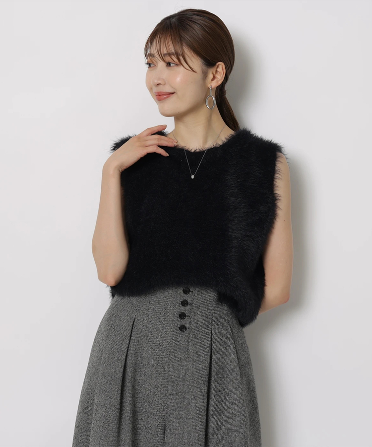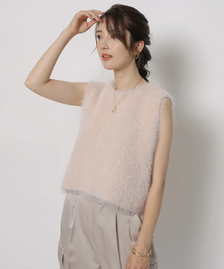 おもわず触れたくなるようなふわふわのフェザーニットで仕立てたプルオーバー。