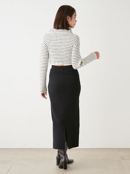伸縮性のある程よい肉感のリブニットを使用しました。ベーシックカラーのオフホワイトとブラックに、レディムード高まるラベンダー、大人カジュアルなボーダーの4色をご用意。