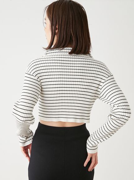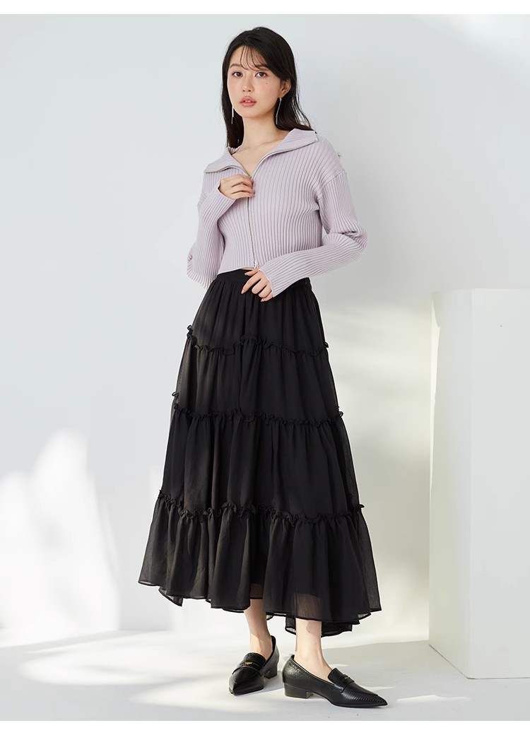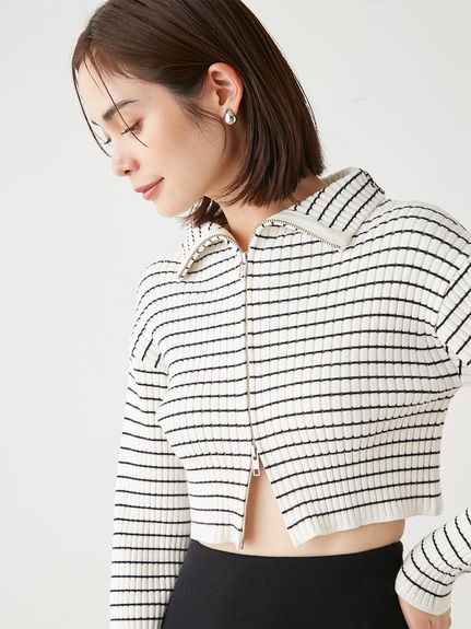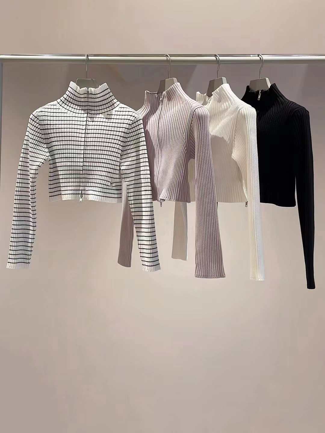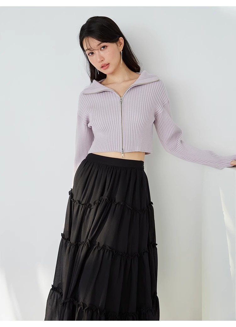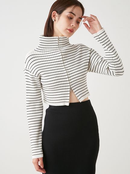 昨年大人気だったフロントジップニットプルオーバーが再登場。ジップを逆開きにし、今季らしくバージョンアップしました。裾からジップを少し上げ、ウエストをチラ見せすればトレンドライクなコーディネートが完成します。クロップド丈のコンパクトなシルエットなので合わせるボトムを選ばず、幅広いスタイリングに活躍してくれます。
