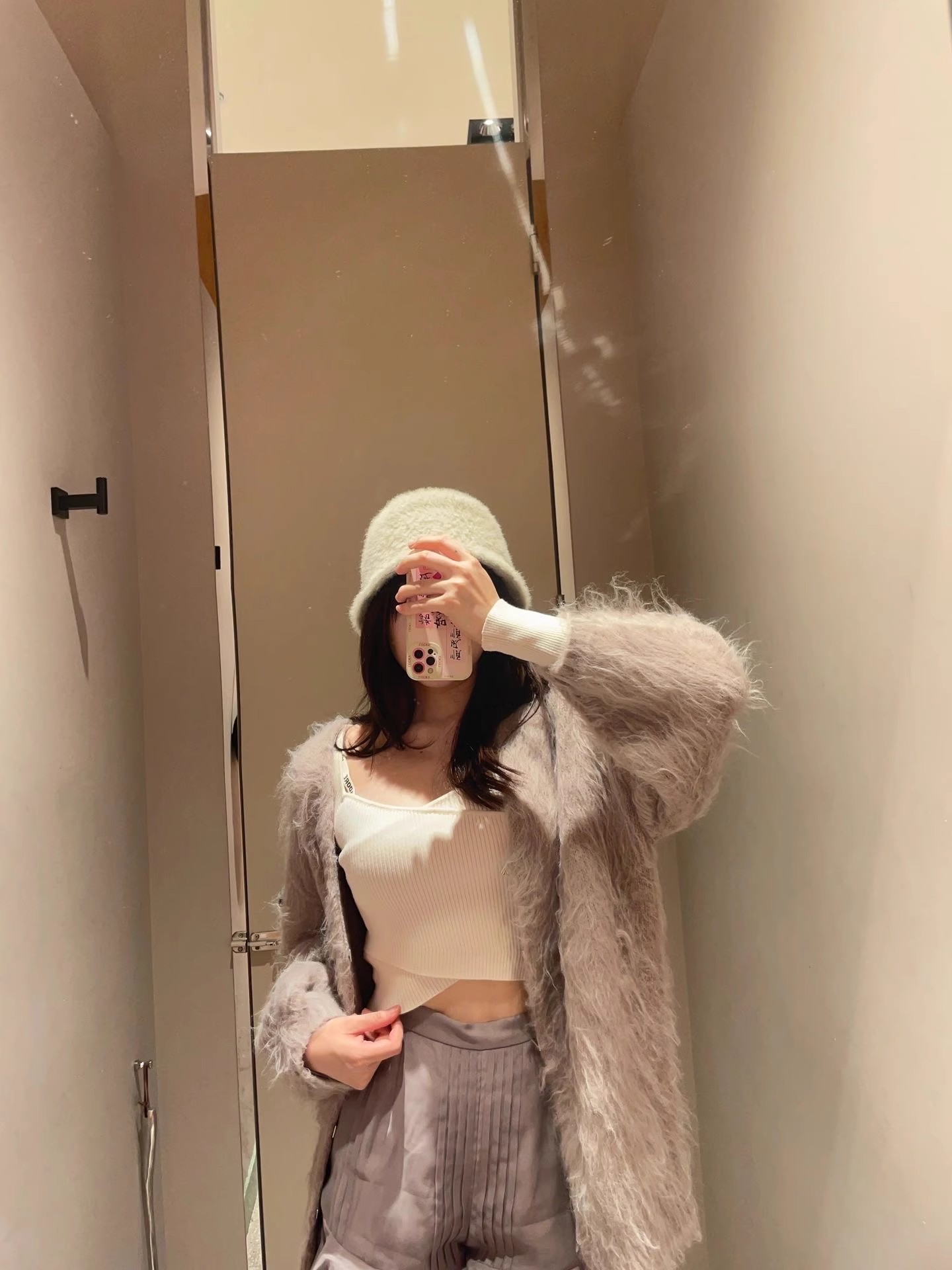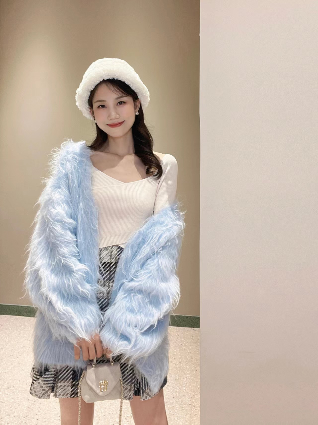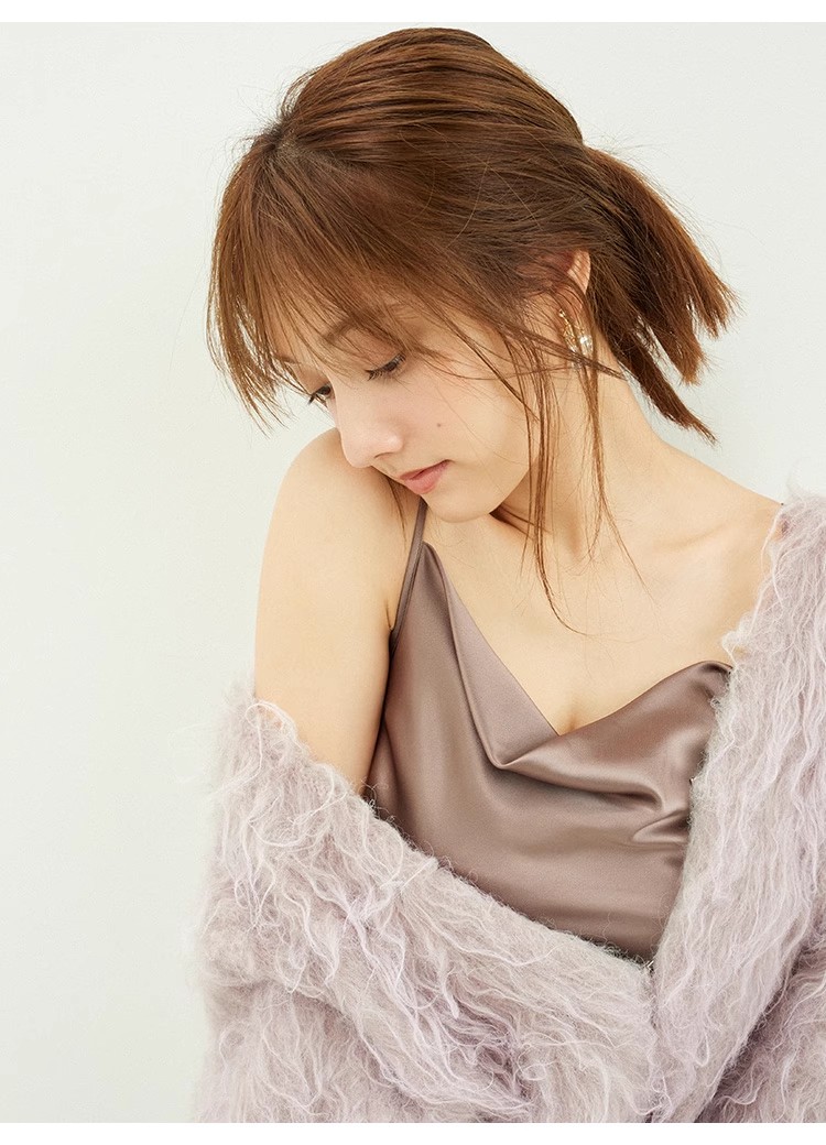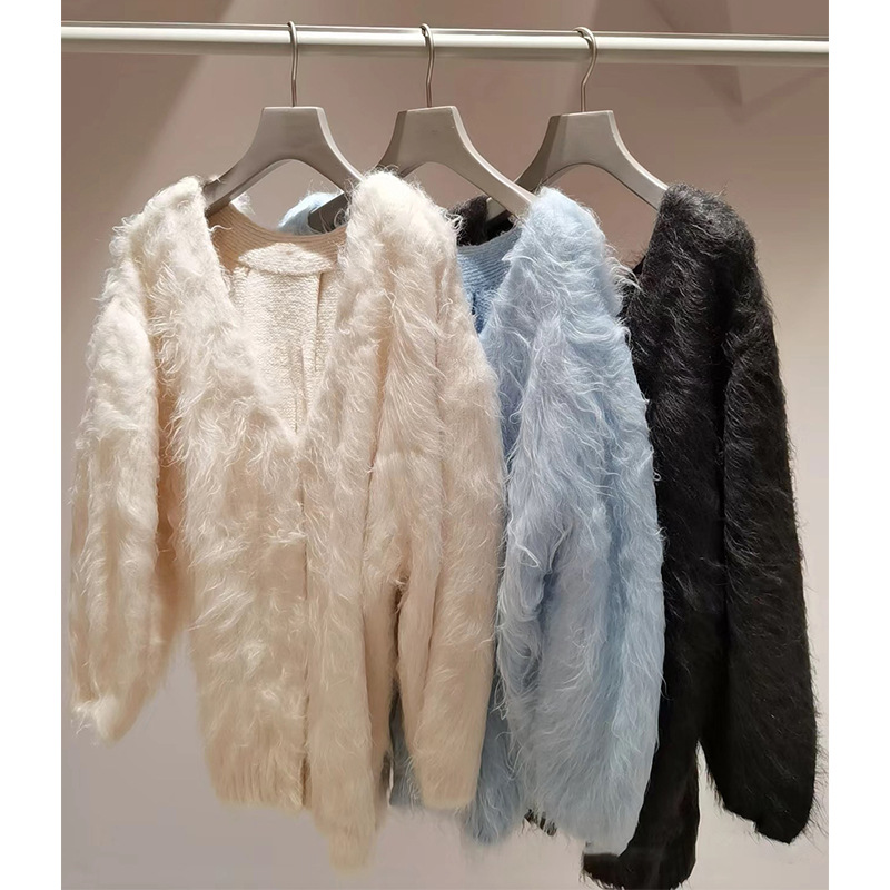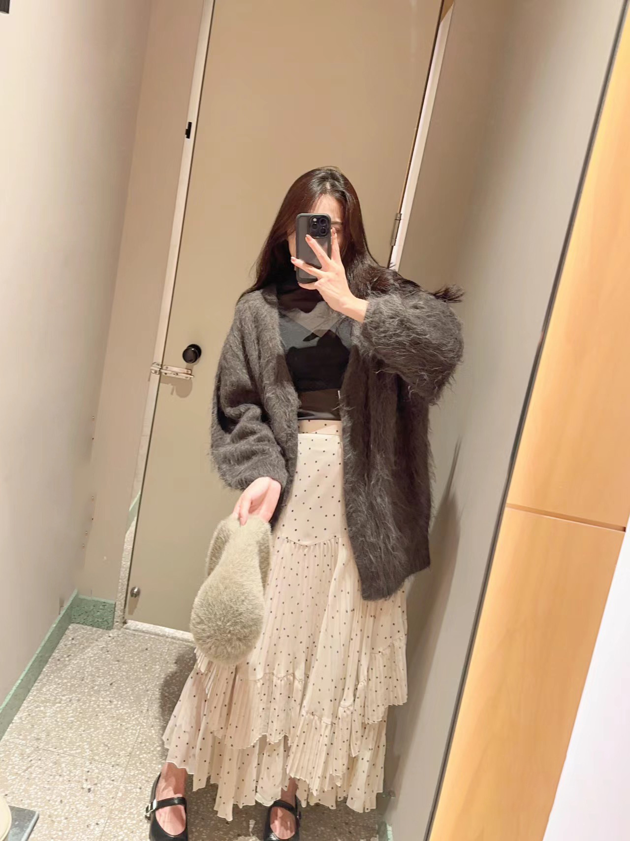 【温もり溢れるシャギーニットで華やかに見せるカーディガン】