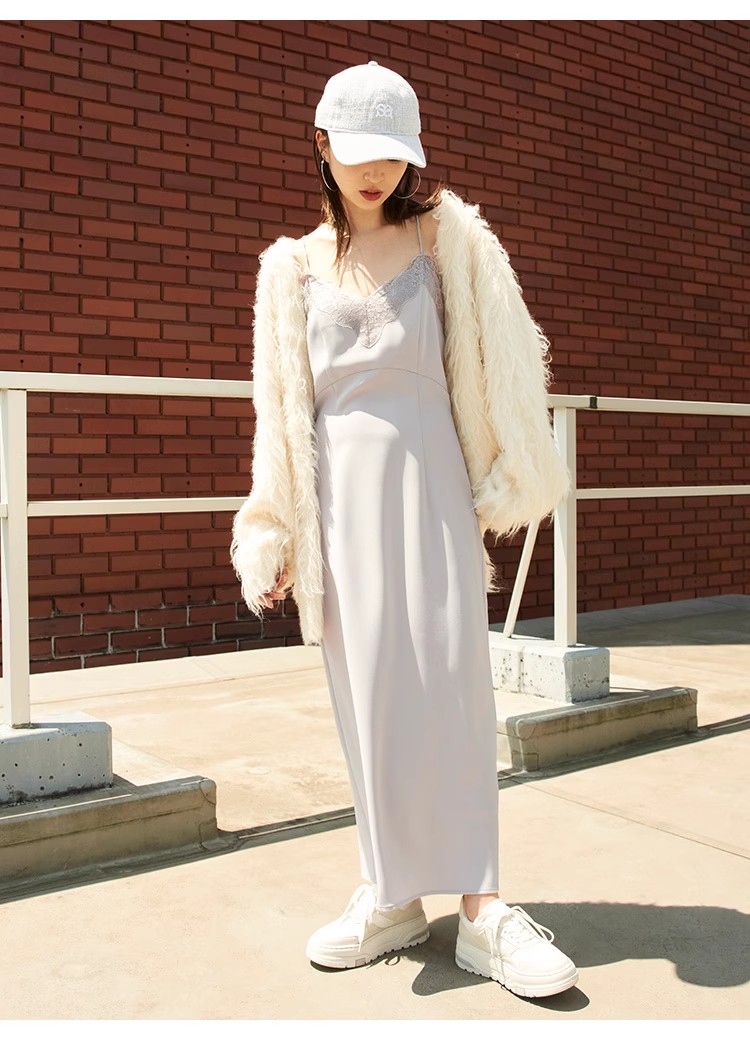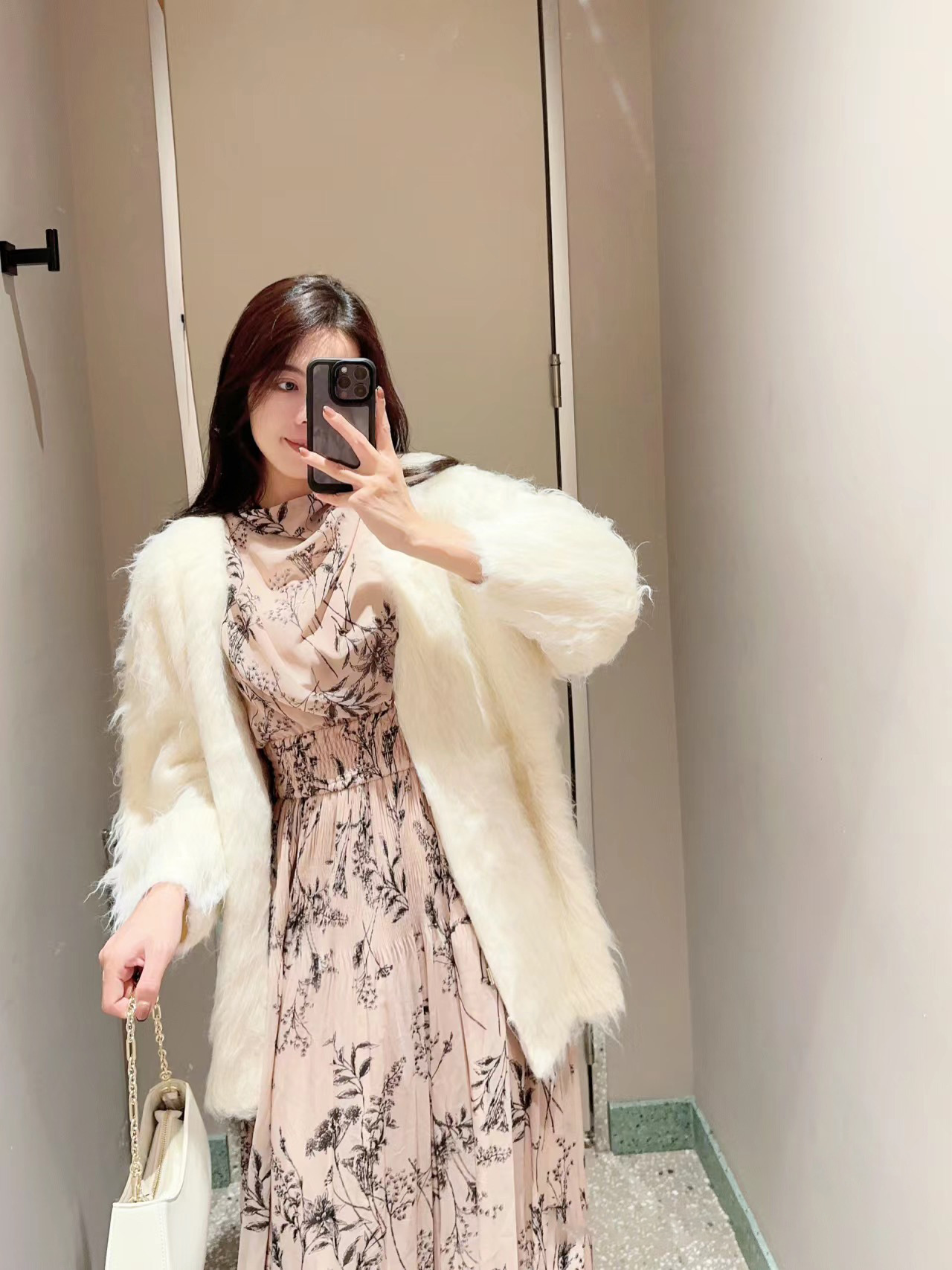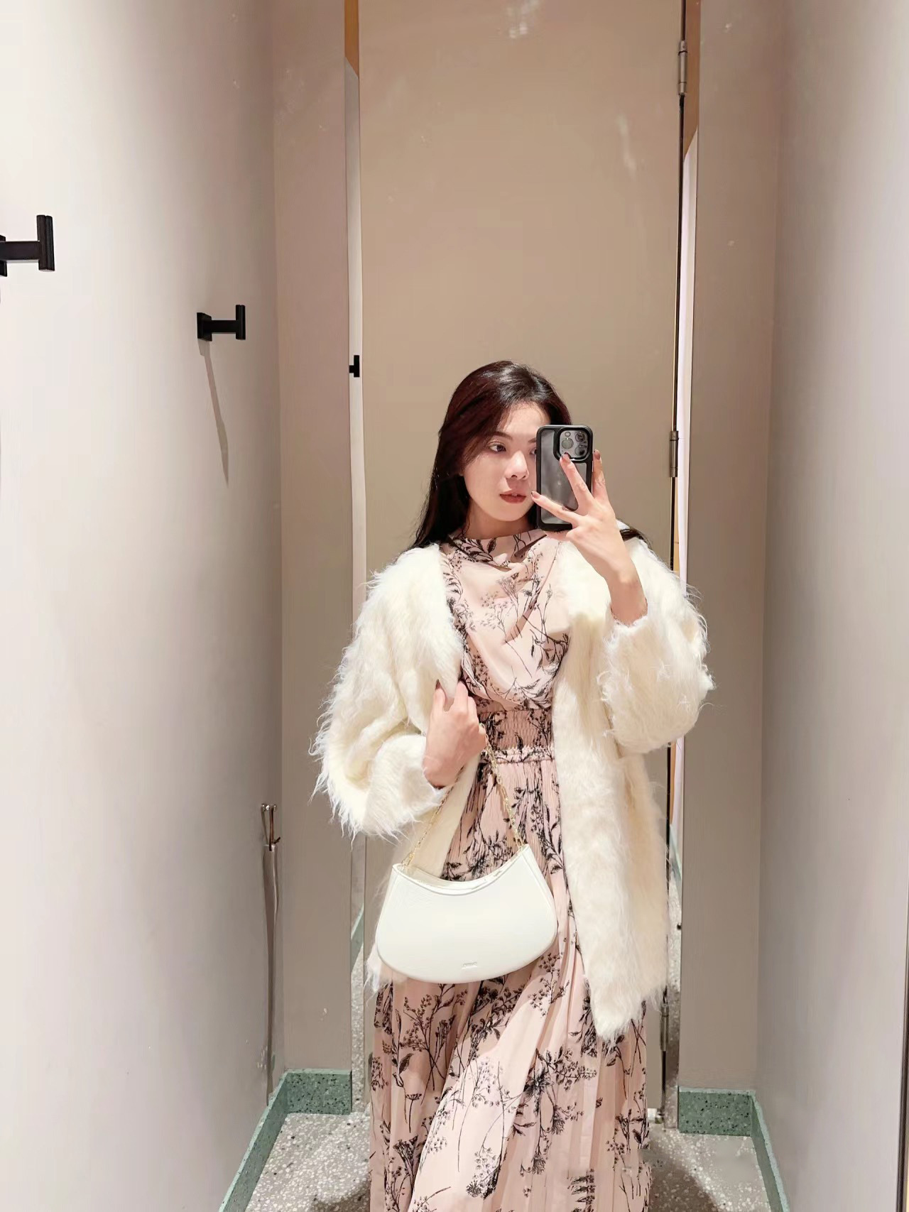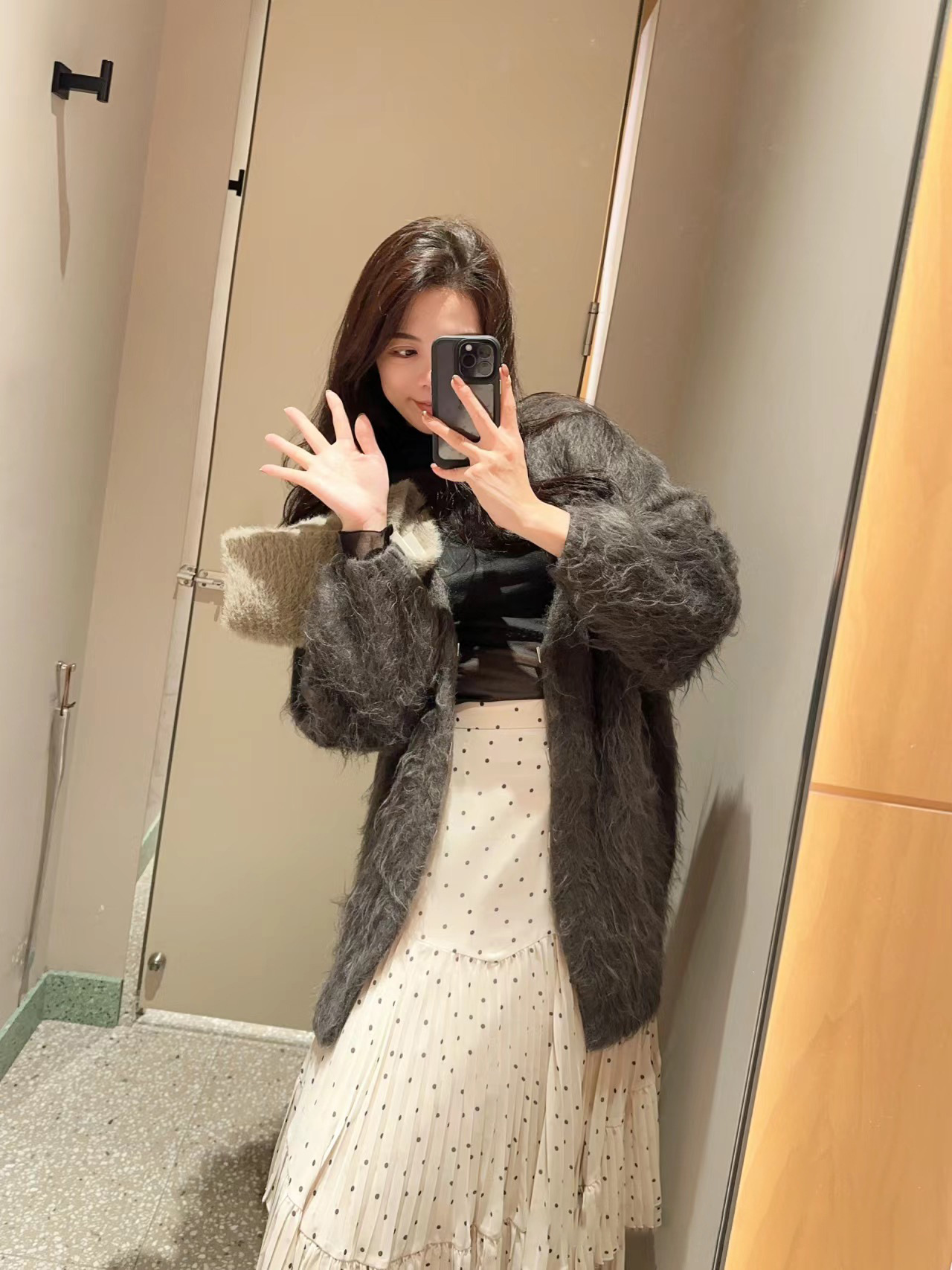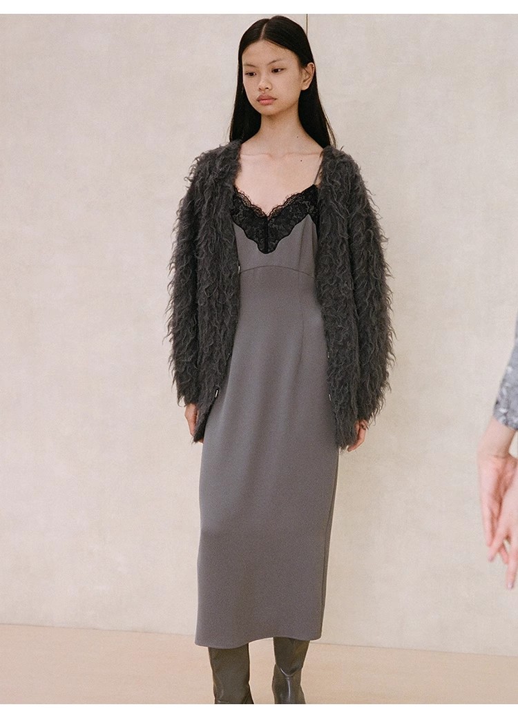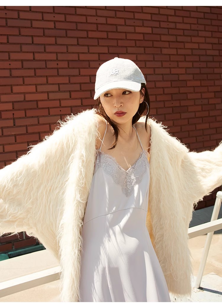 【温もり溢れるシャギーニットで華やかに見せるカーディガン】