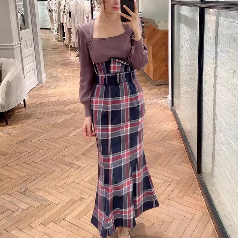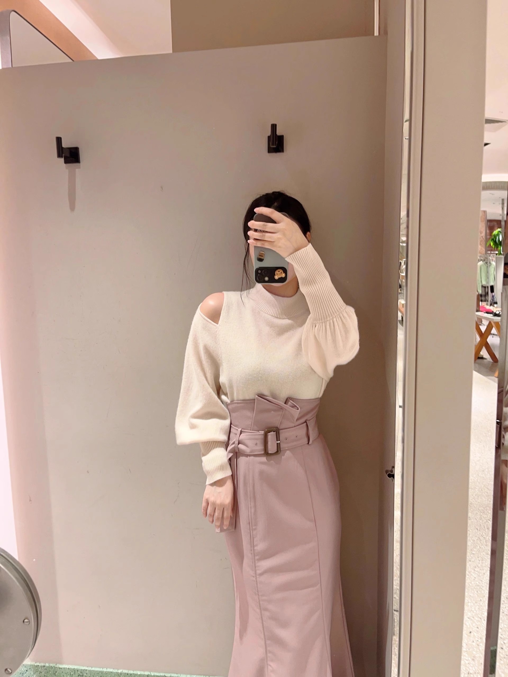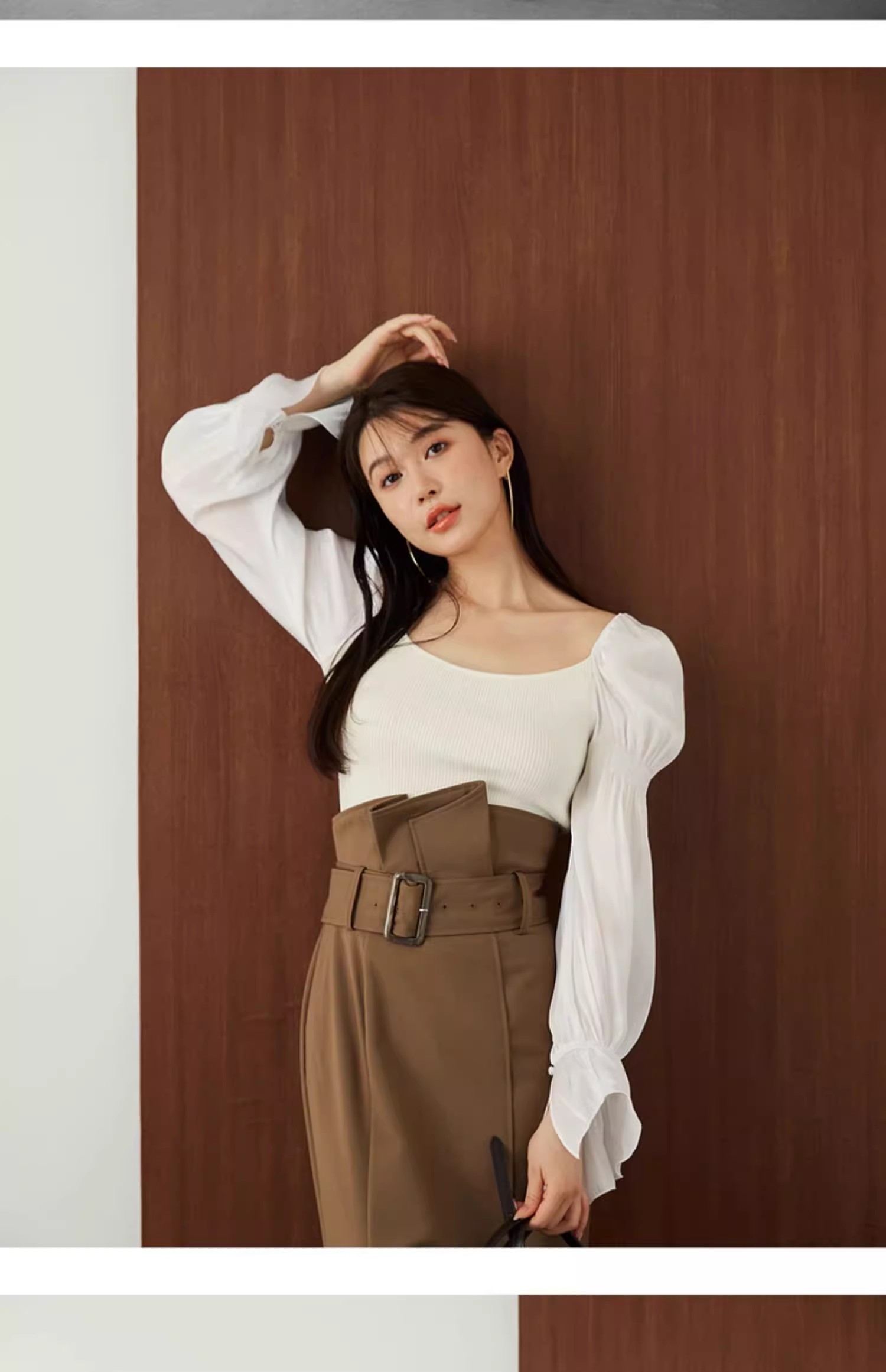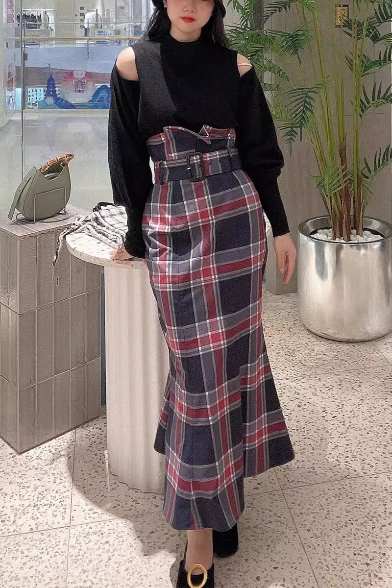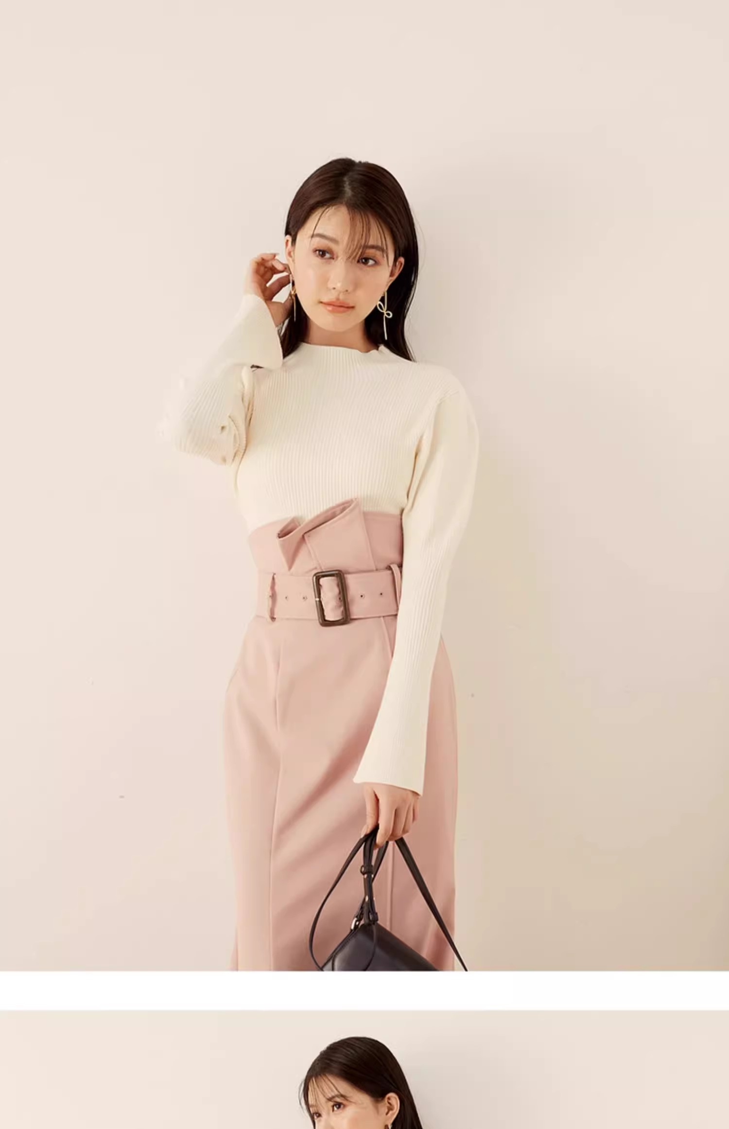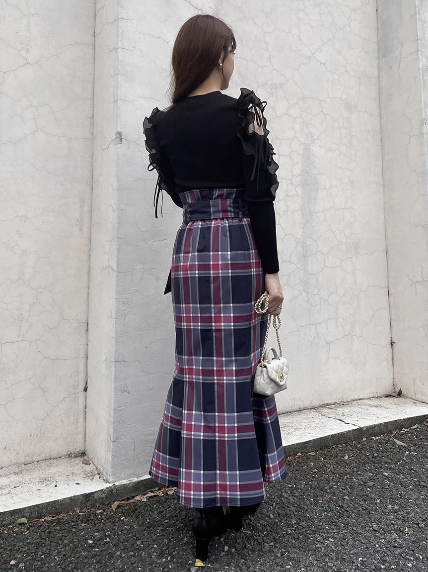 【ワイドベルトとウエストフリルで華やかモードに仕上げたマーメイドスカート】