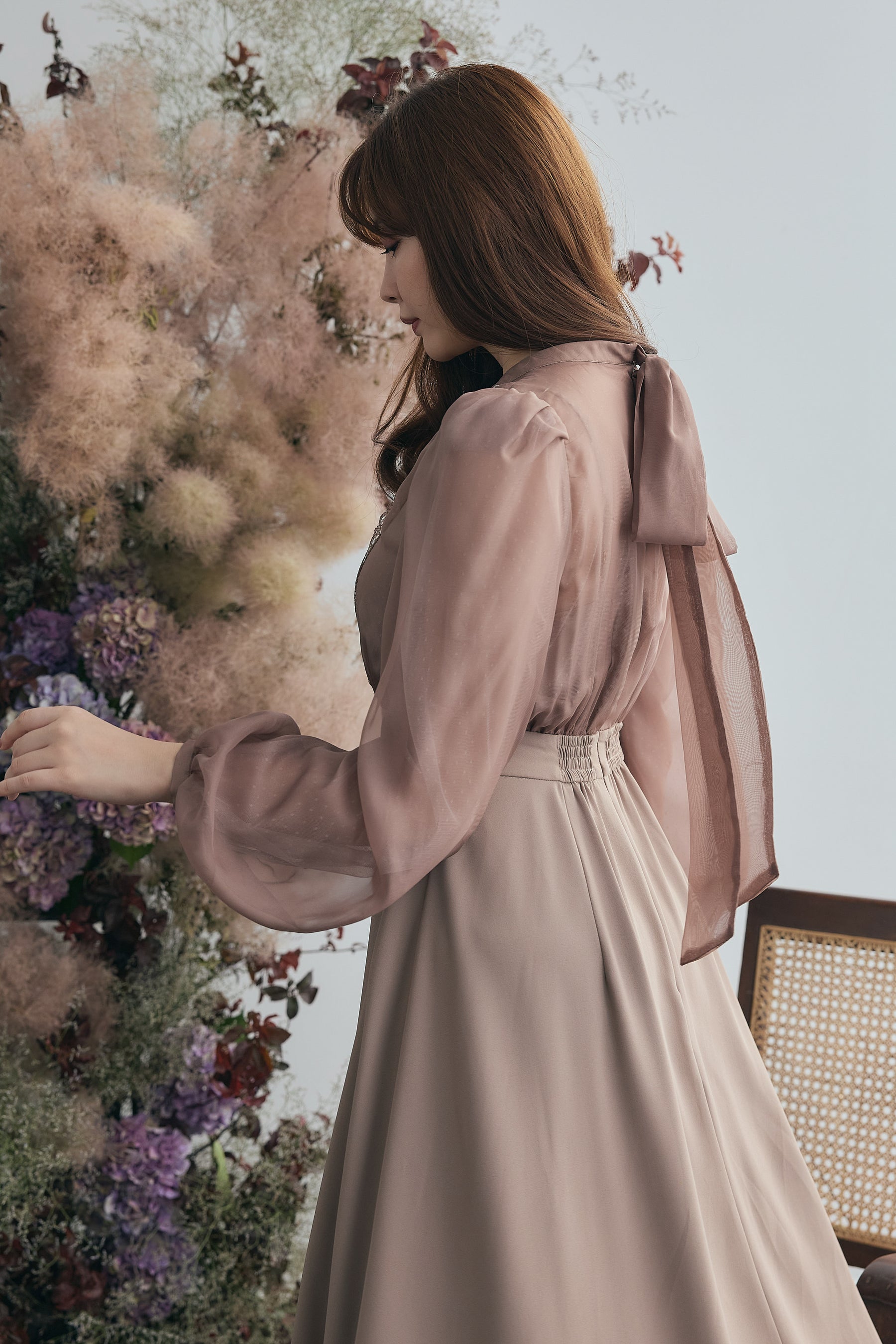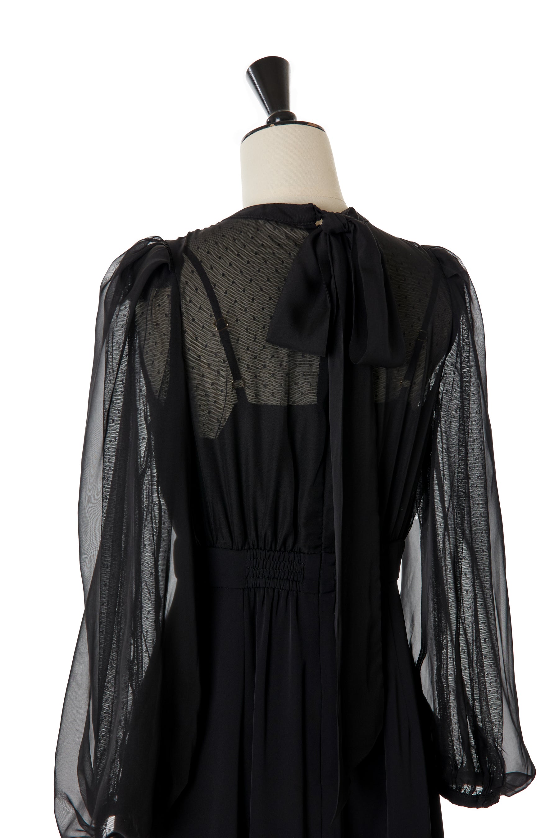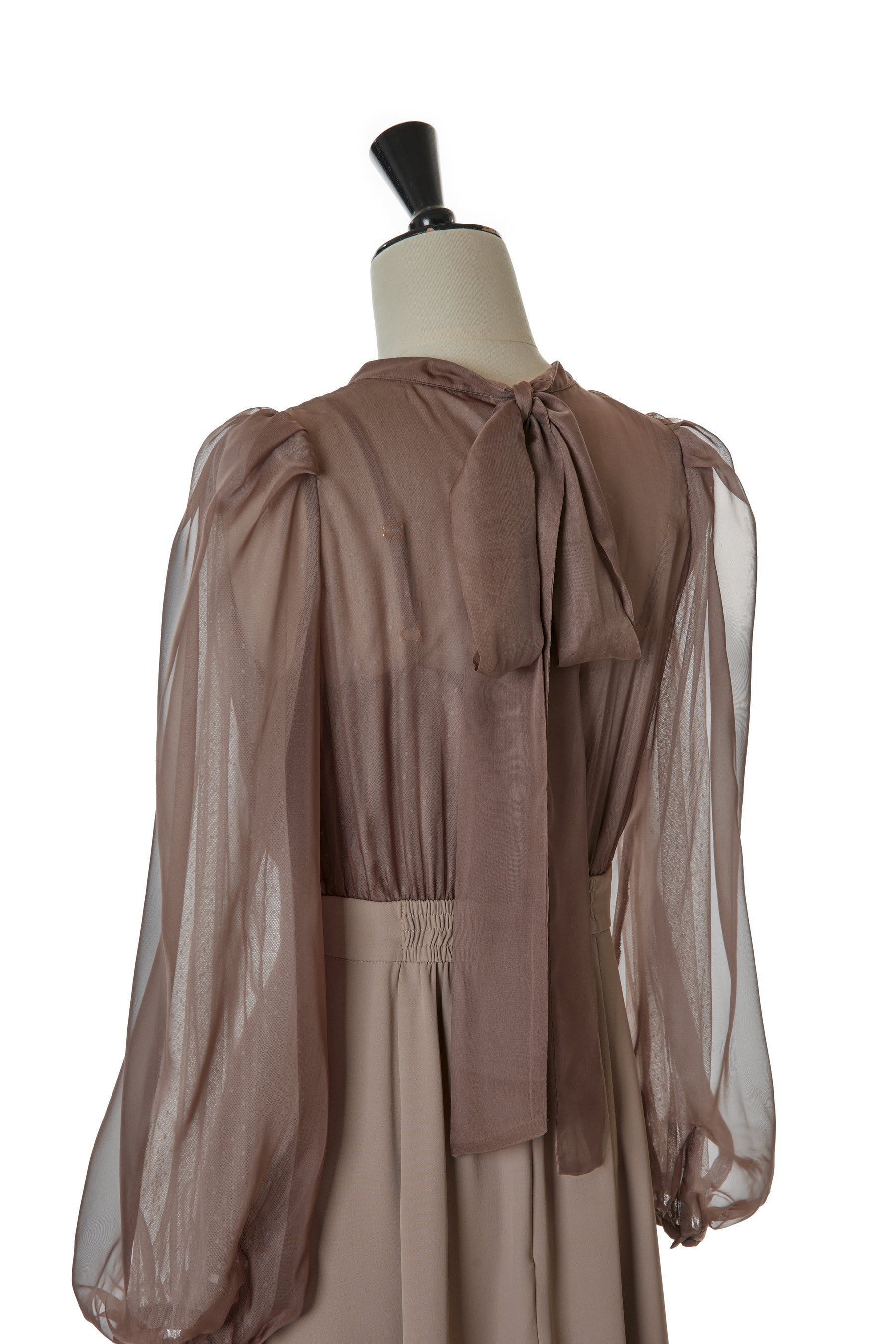ボリューム感が美しく魅力的な袖はチュールを2枚に重ねているため、透ける心配もなく長いシーズンお召しいただく事が可能です。