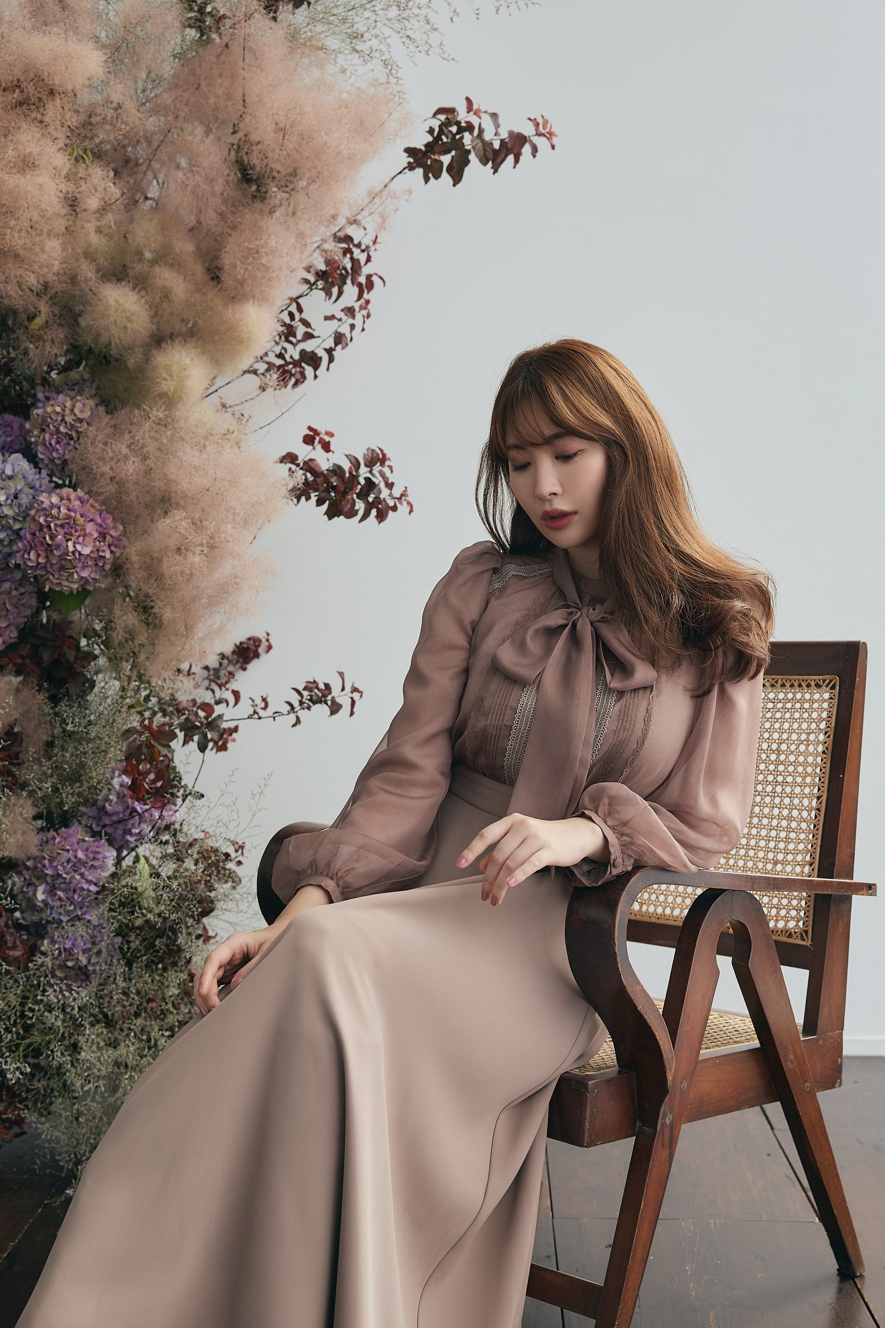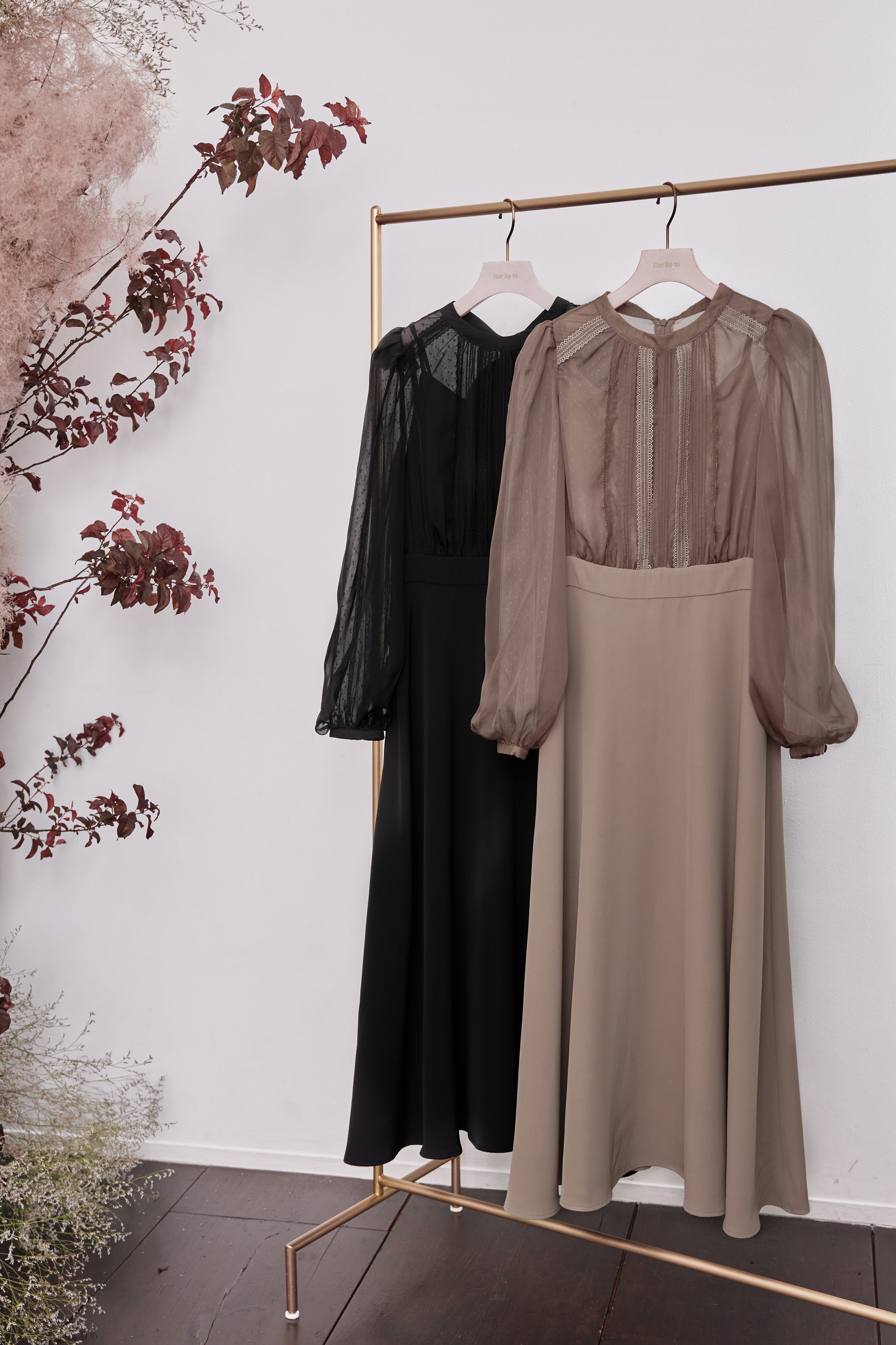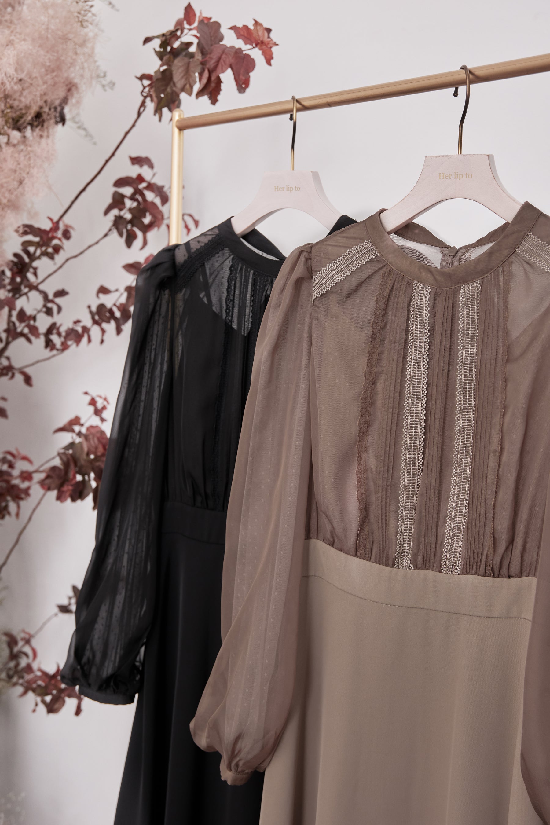 ボリューム感が美しく魅力的な袖はチュールを2枚に重ねているため、透ける心配もなく長いシーズンお召しいただく事が可能です。
