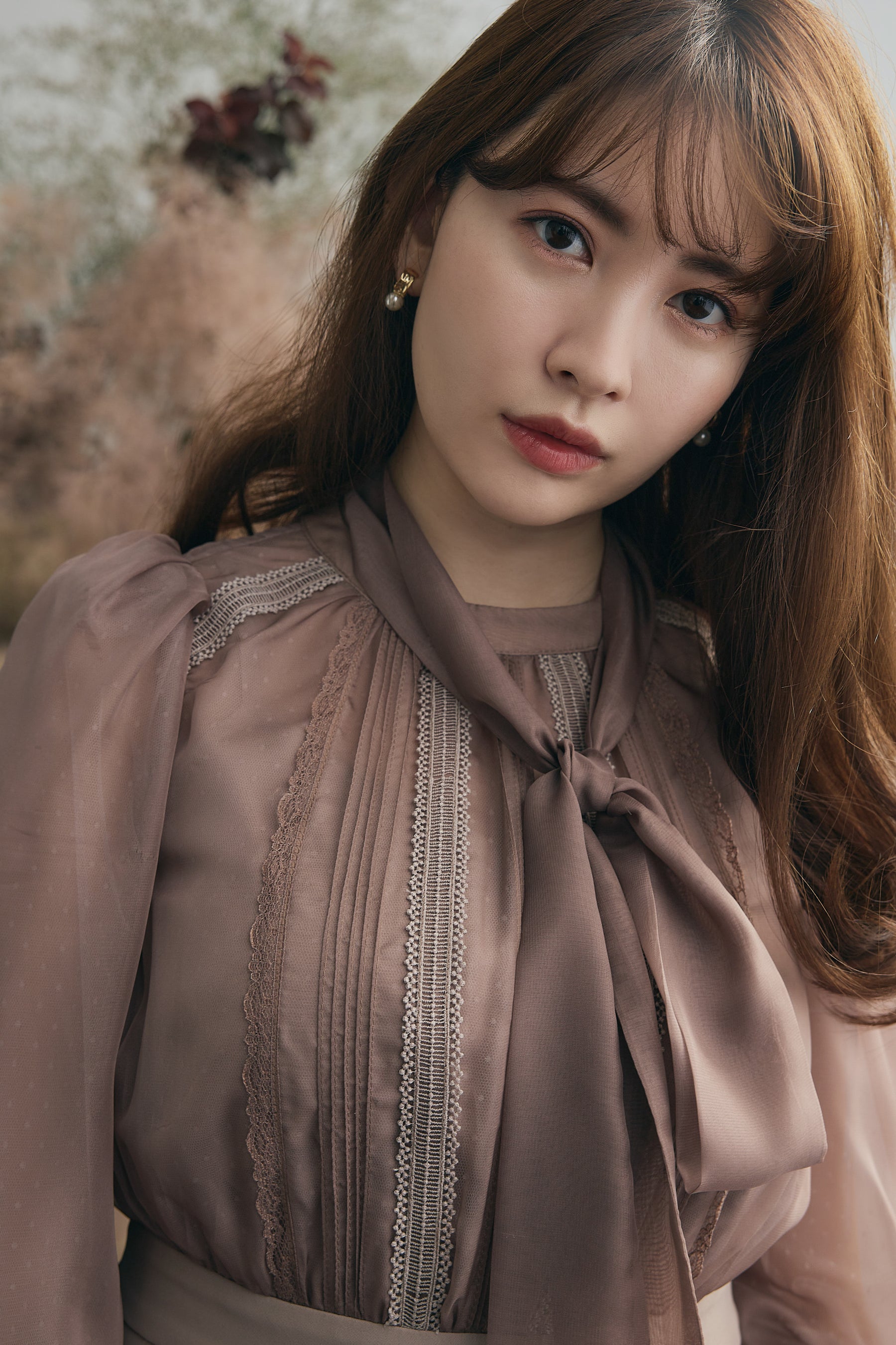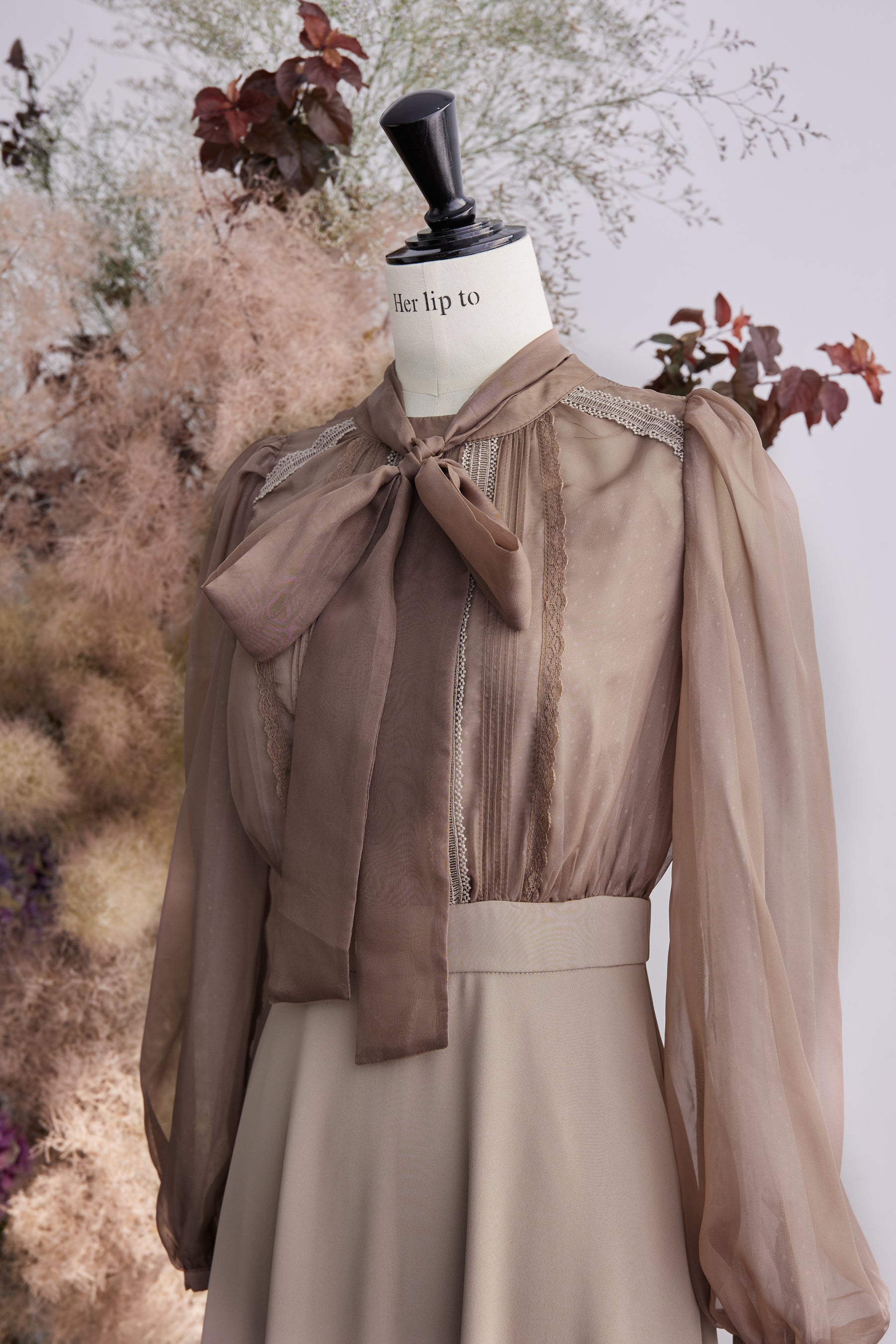 ピンタックと異なる梯子レースを施したディティールが上品な雰囲気を惹き立てています。
