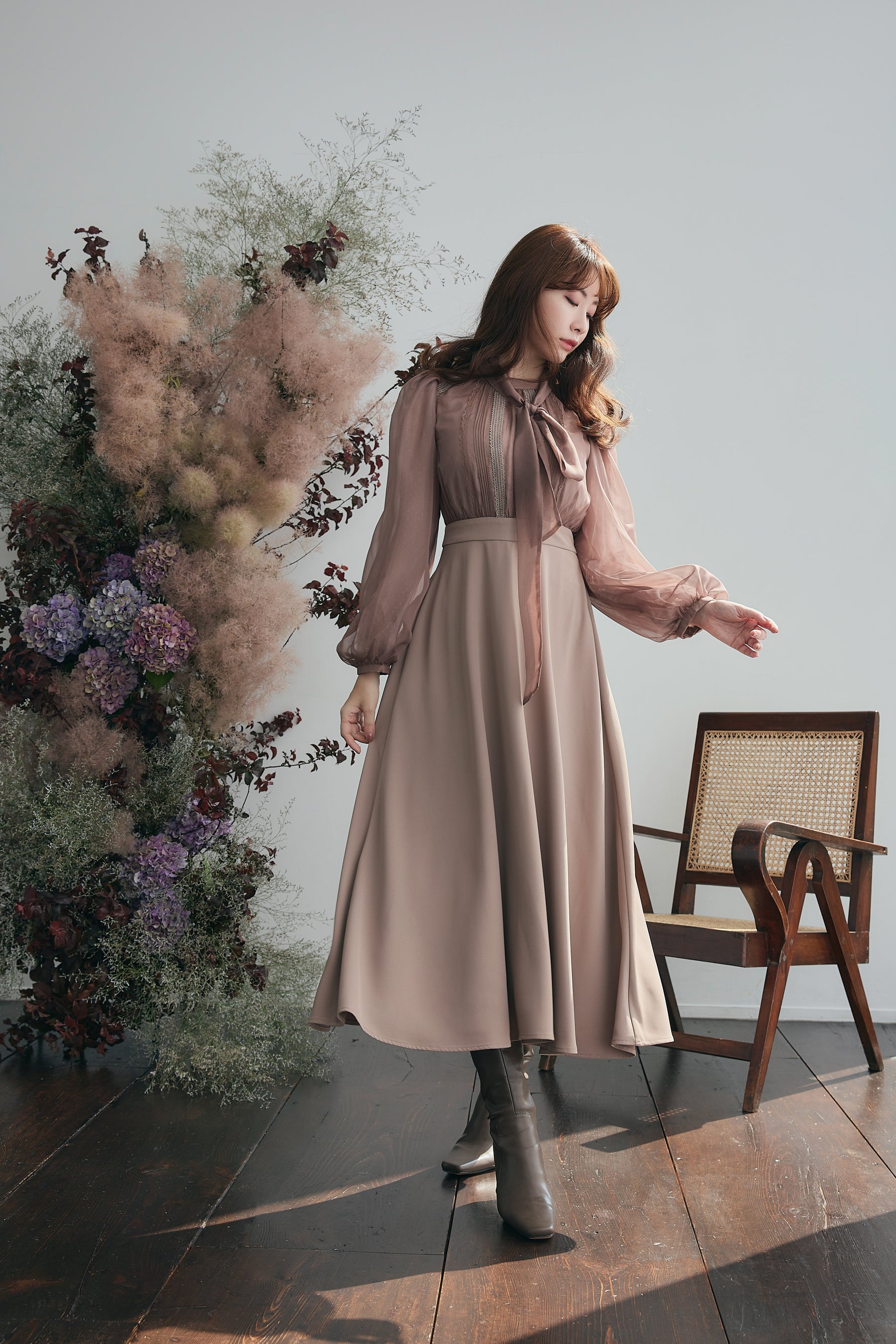 クラシカルでレディな着こなしが完成するドッキングドレス。