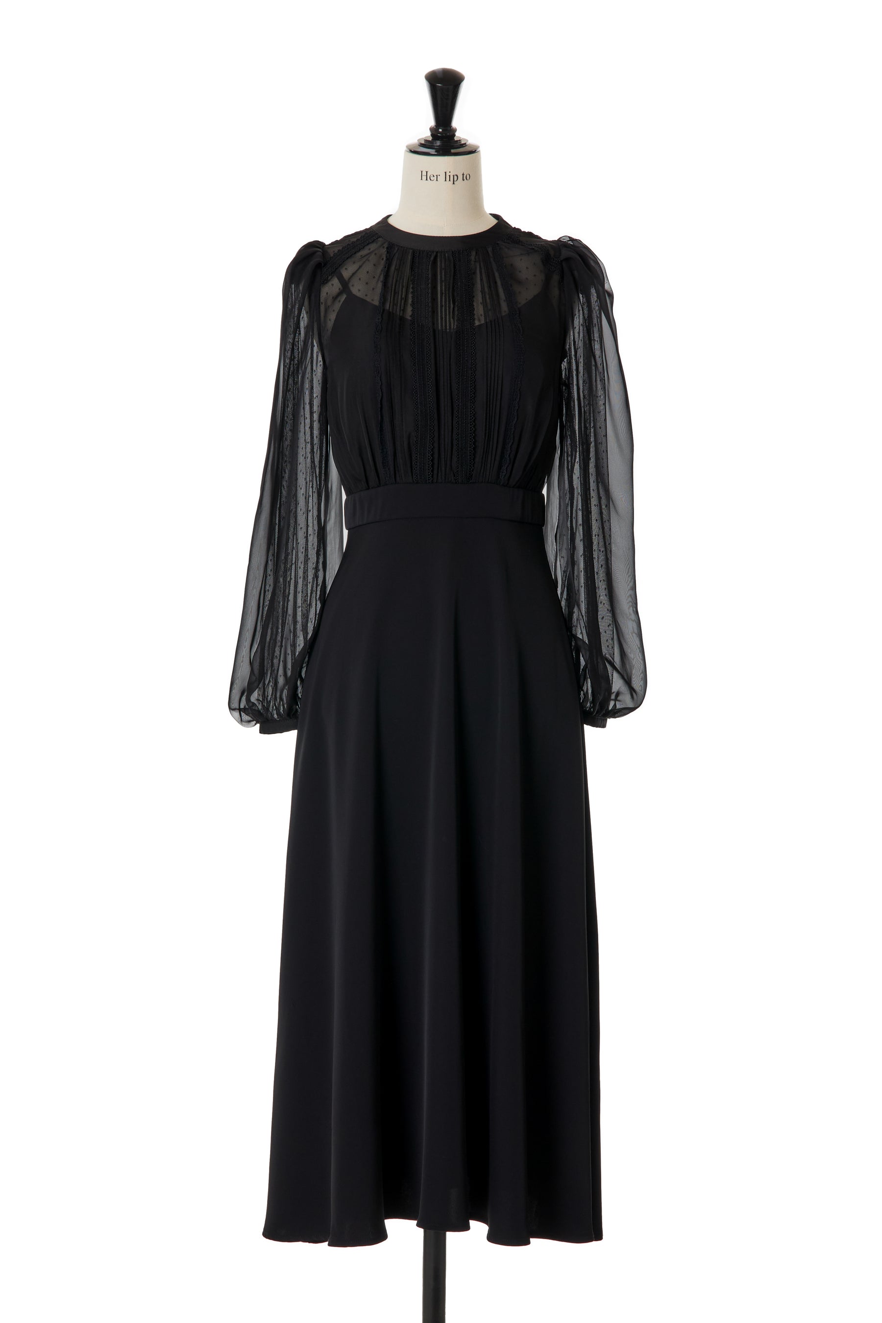 まるでブラウスを合わせているかのようなトップス部分は、繊細なドットチュールと光沢のある上品なチュールの異素材を重ねたデザイン。