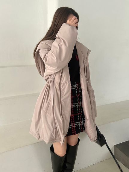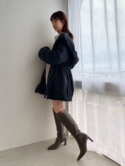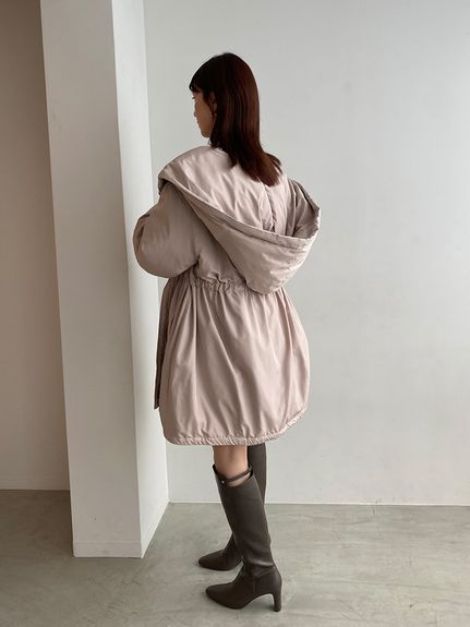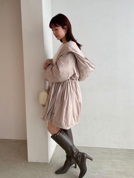 毎年少しずつアップデートしているSNIDELの冬の定番・レディモッズコート。今シーズンは、襟元から大胆に繋がる大きめのフードをアクセントに。後ろ姿を印象的に見せるだけでなく、小顔効果も狙えます。裾と袖口にはドロストコードをセットし、きゅっと絞ると丸みを帯びた柔らかなフォルムに変化。さらにやや高めの位置にグログランリボンをあしらい、ウエストのフィット感が調整できる仕様にしました。膝上のミディ丈は、ミニボトムとのロングボトムとも好相性な絶妙なレングス。様々なコーディネートに合わせてお楽しみいただけます。