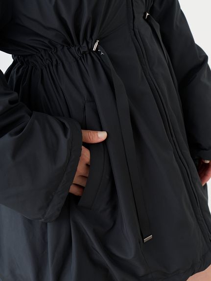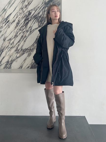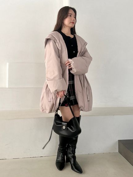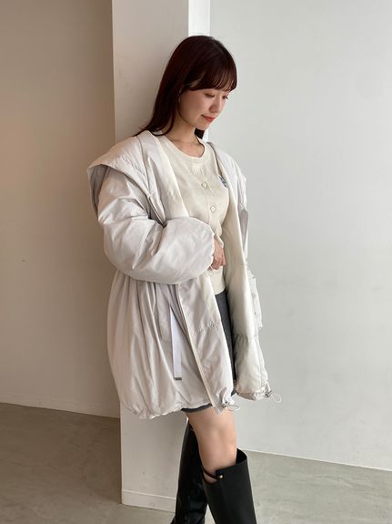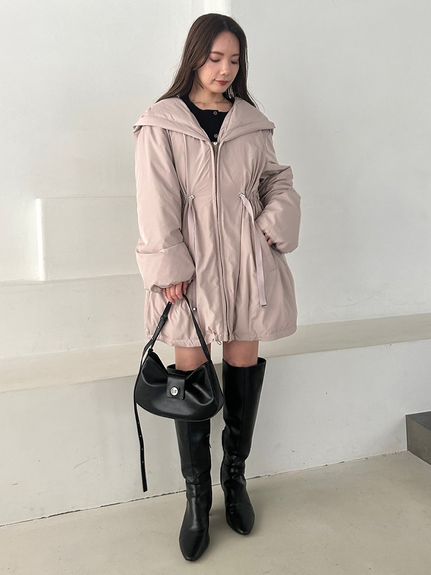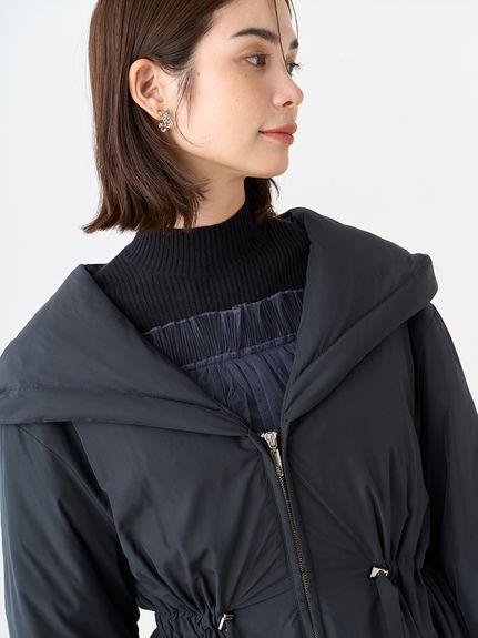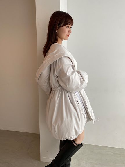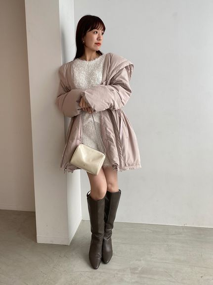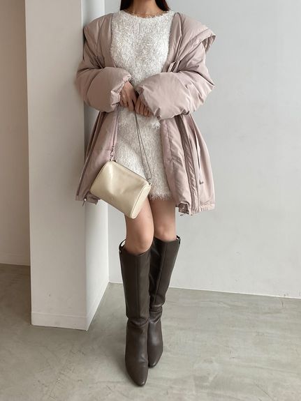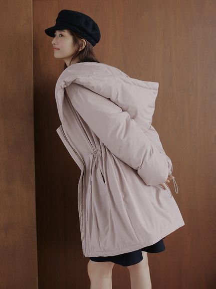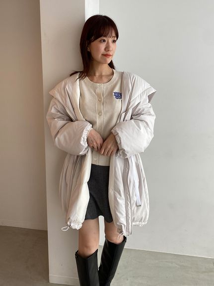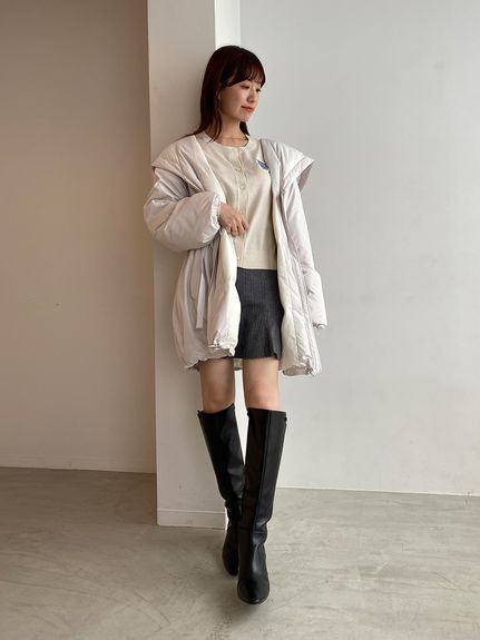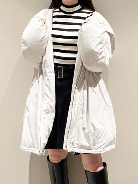 環境にやさしい西川のアップサイクルダウンを使用。表面はマット加工にすることで、カジュアルに傾きすぎず、適度なきれいめ感をプラスしました。重たくなりがちな冬に軽やかに映えるアイボリー、一枚は持っておきたい定番カラーのブラック、甘めカジュアルな気分に寄り添うピンクページュの3色展開です。