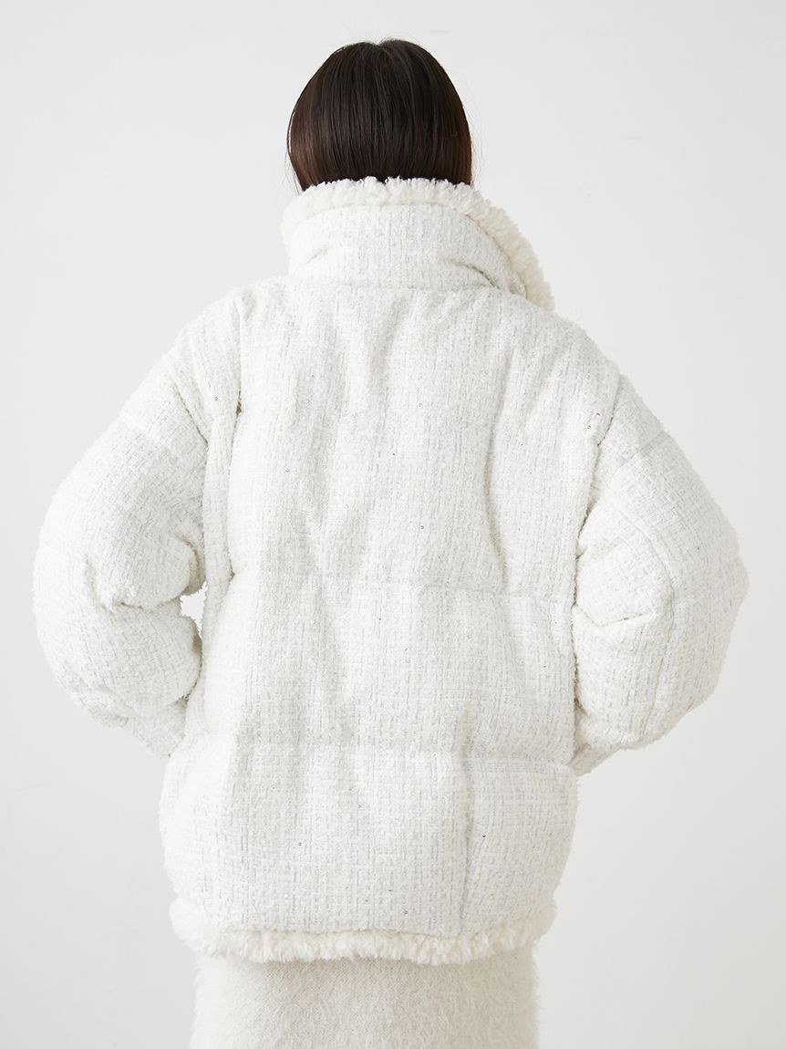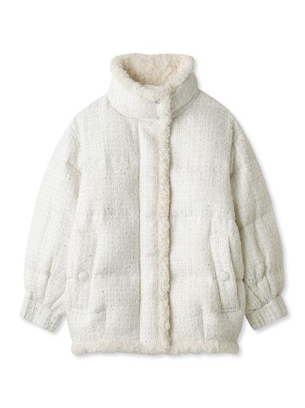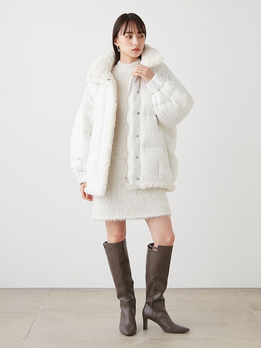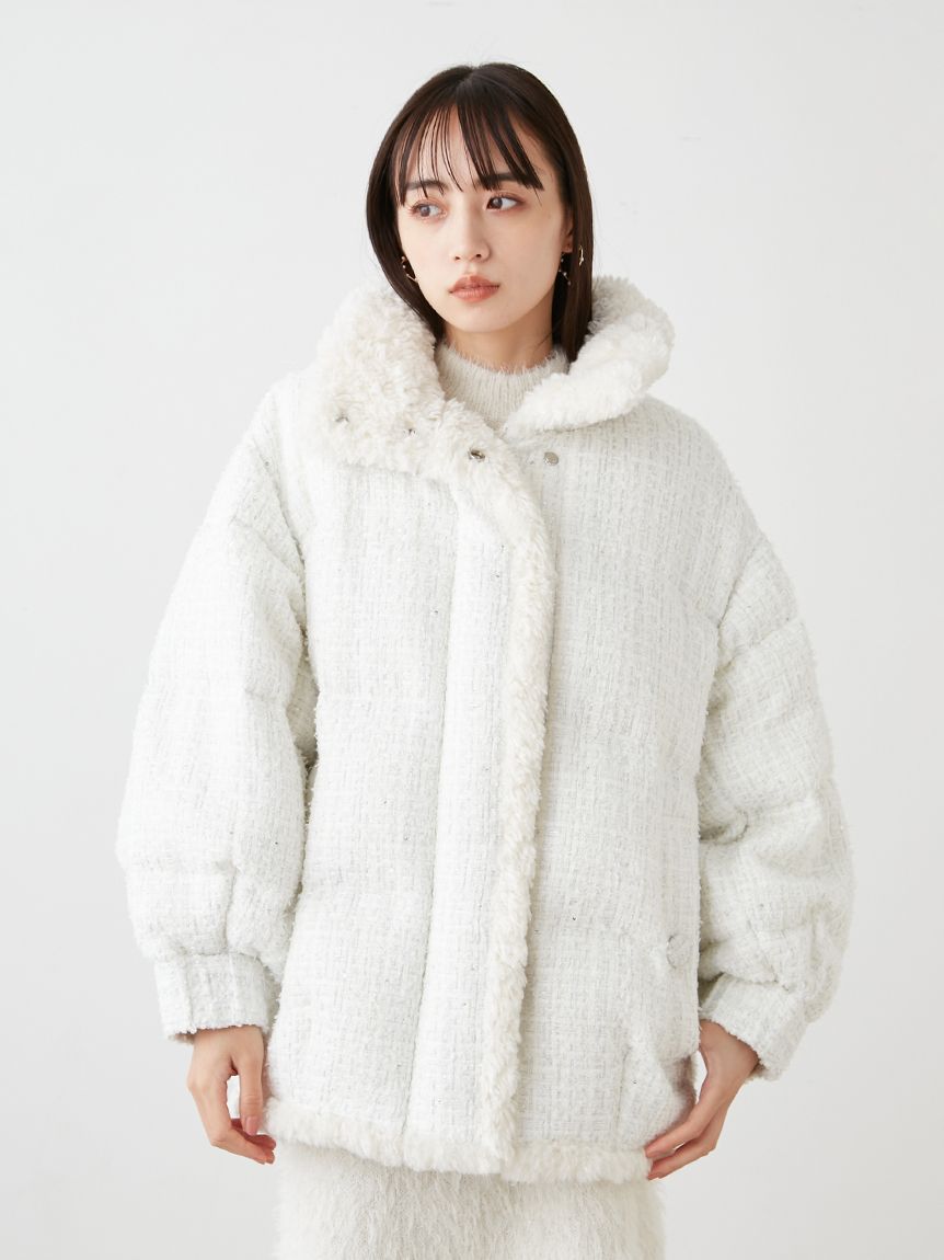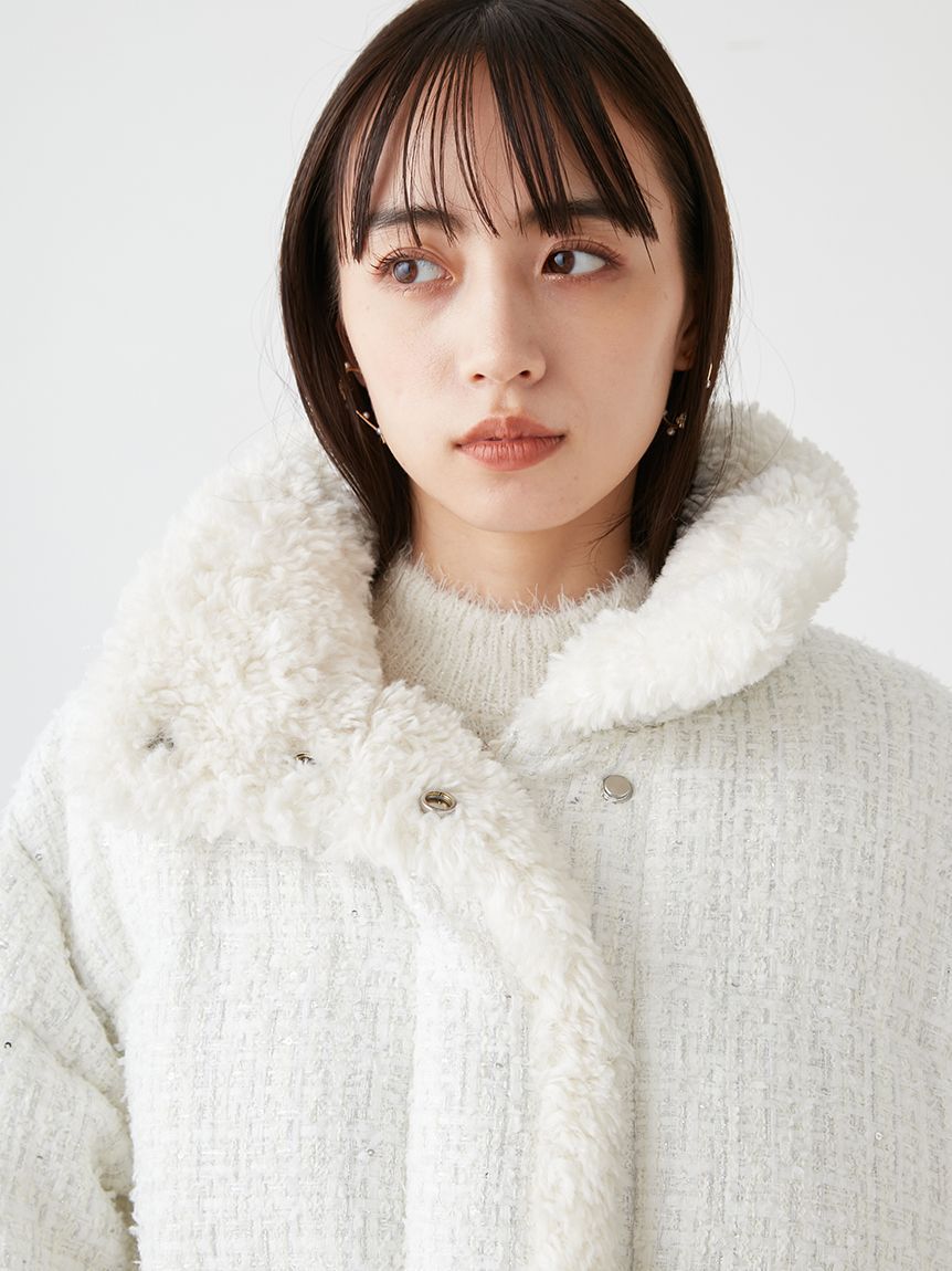 【ボアやラメなど華やかな質感MIXで魅せるツイードダウン】