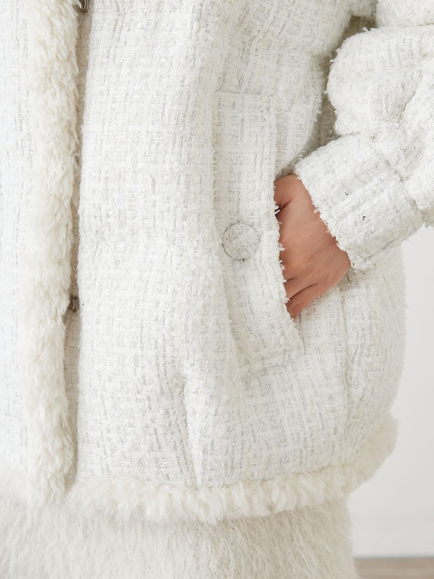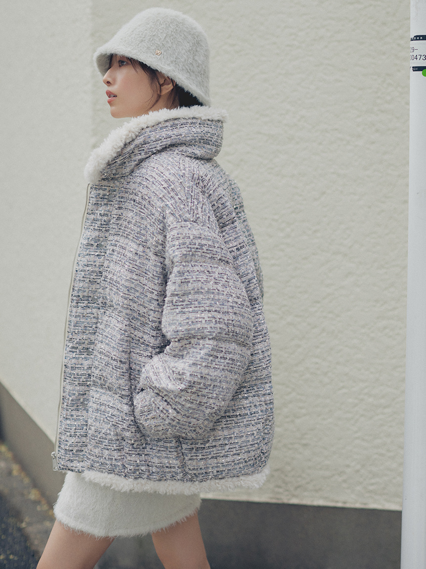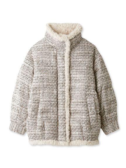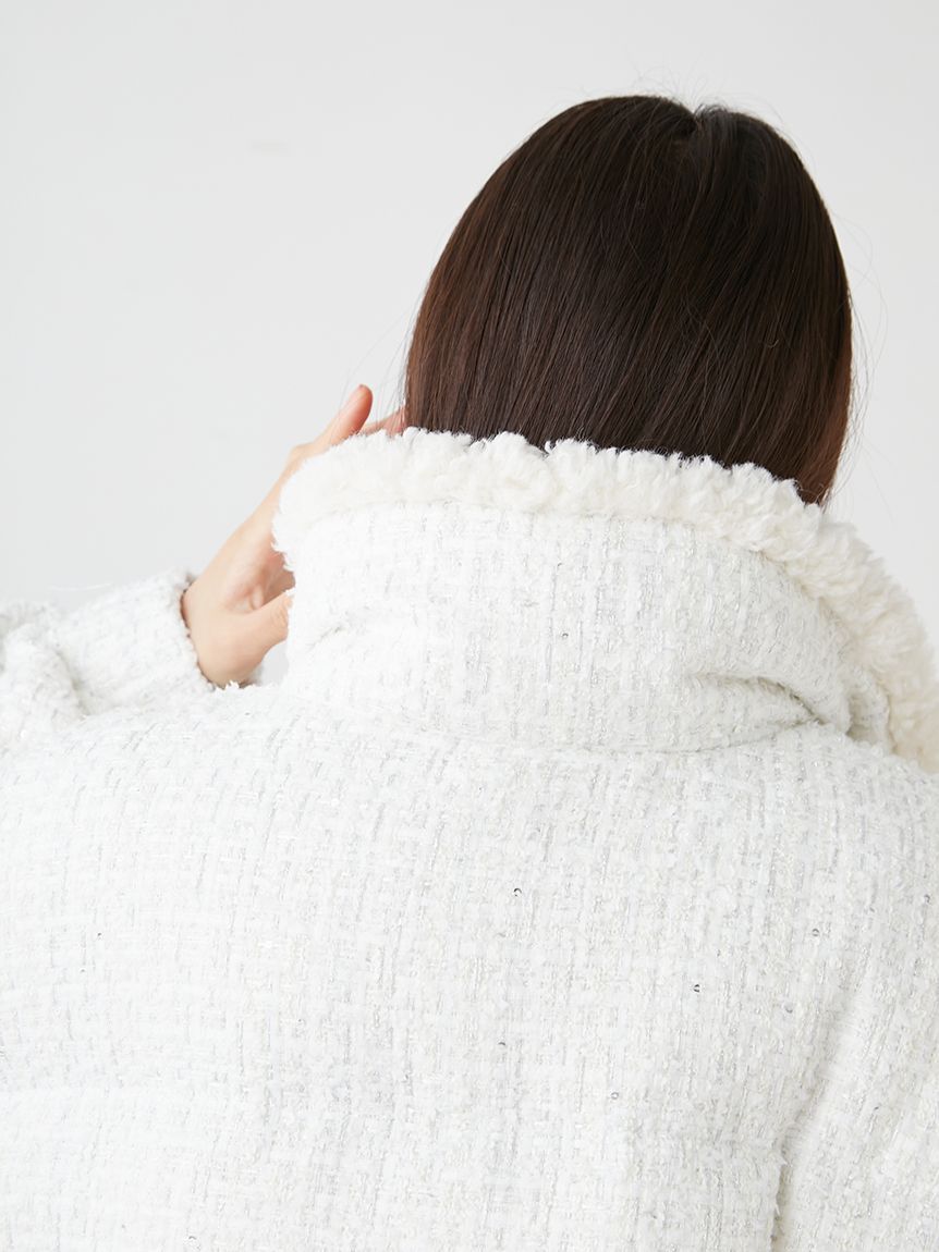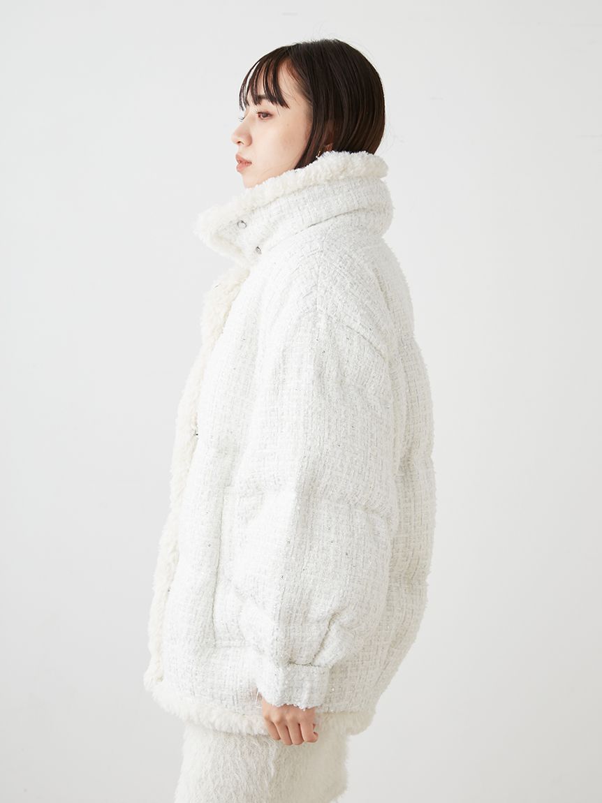 【ボアやラメなど華やかな質感MIXで魅せるツイードダウン】