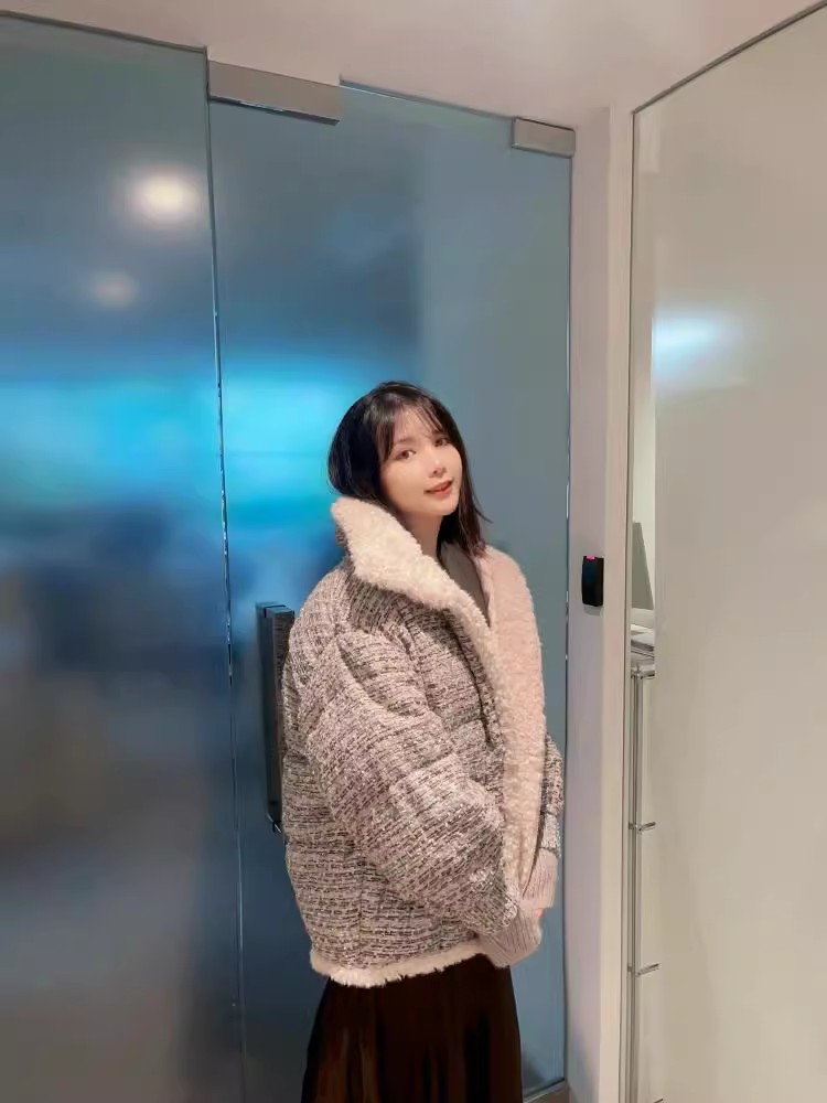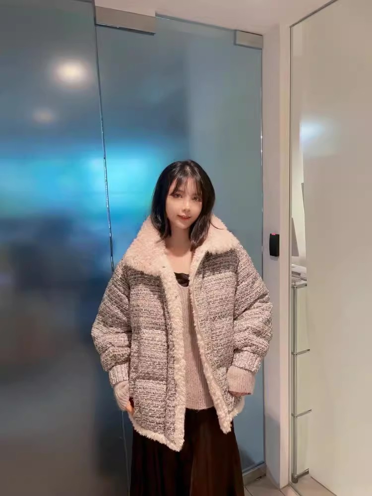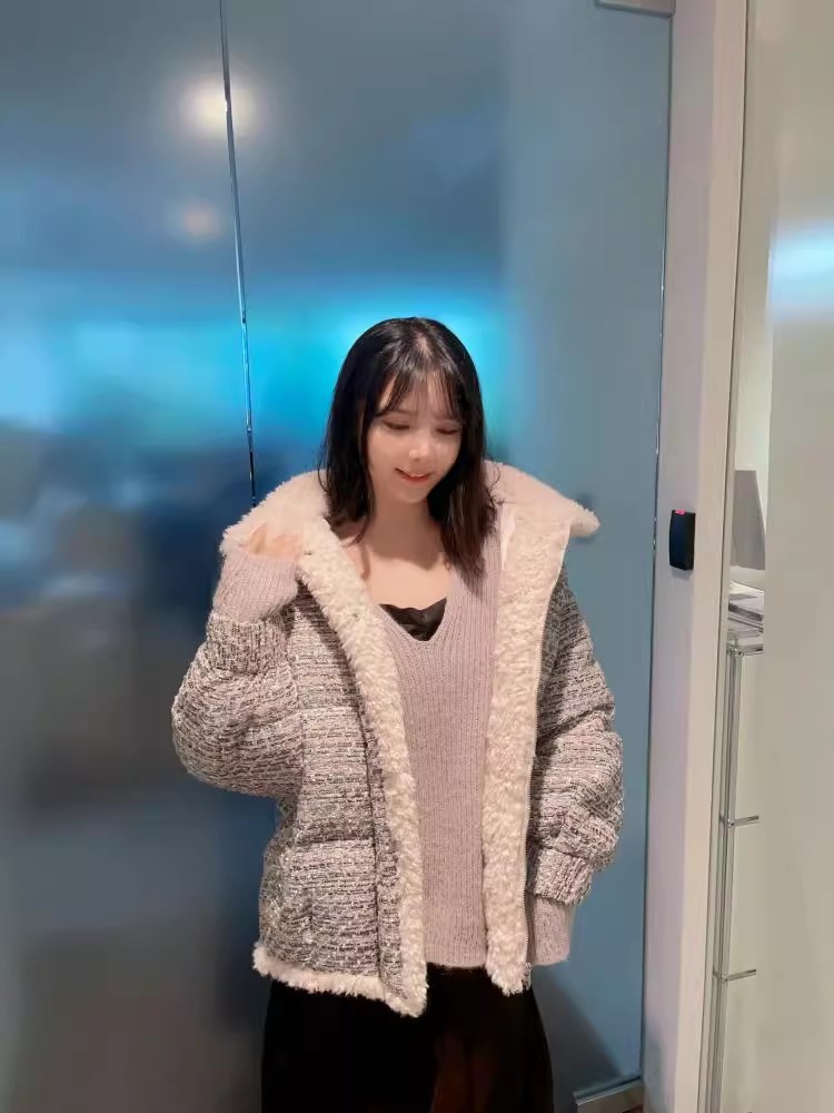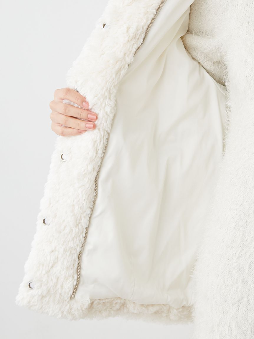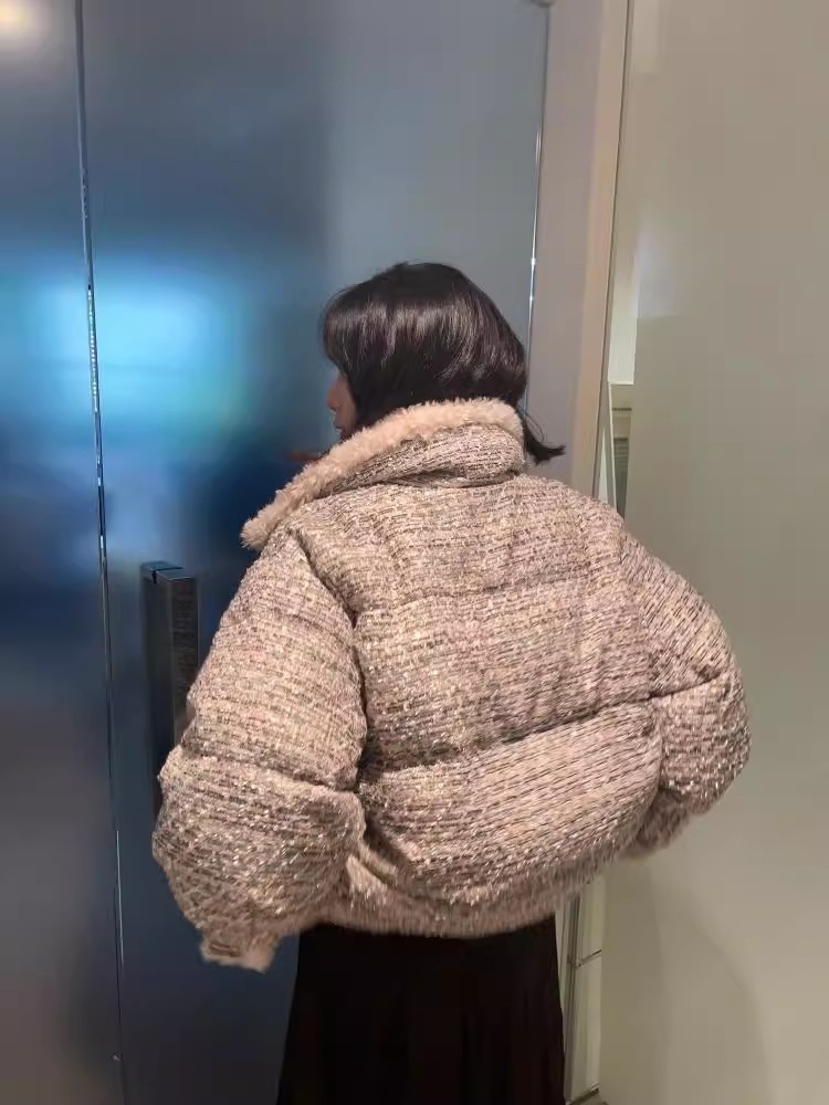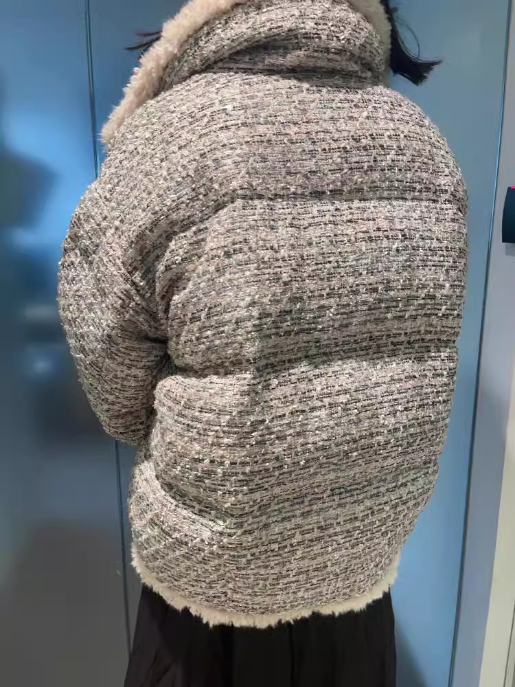 【ボアやラメなど華やかな質感MIXで魅せるツイードダウン】