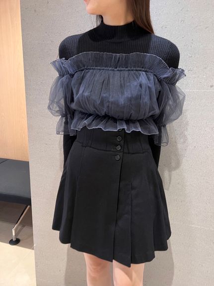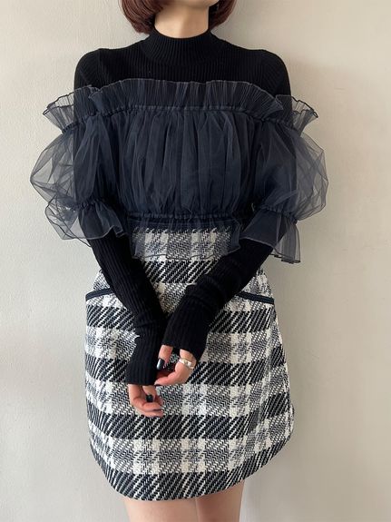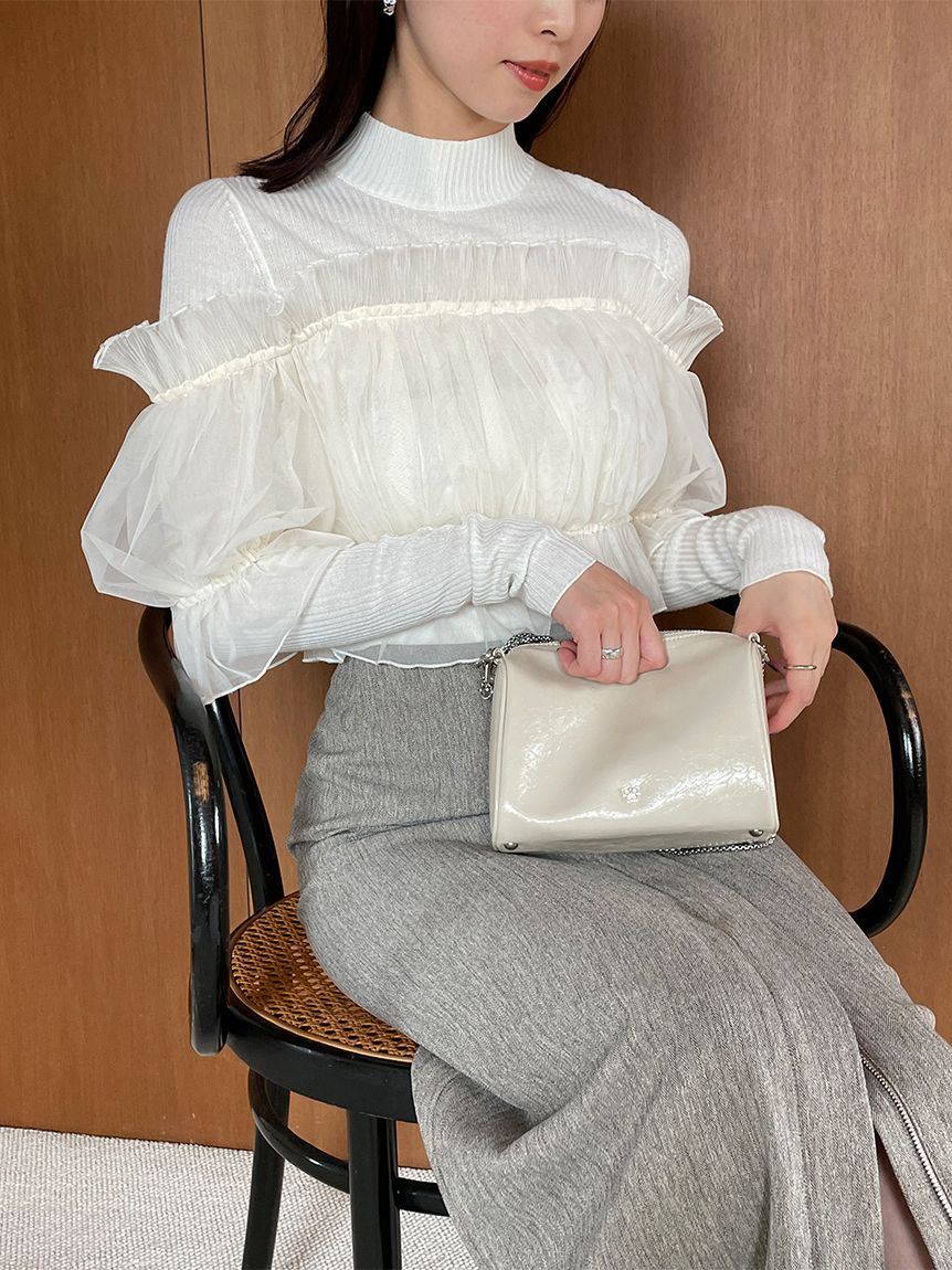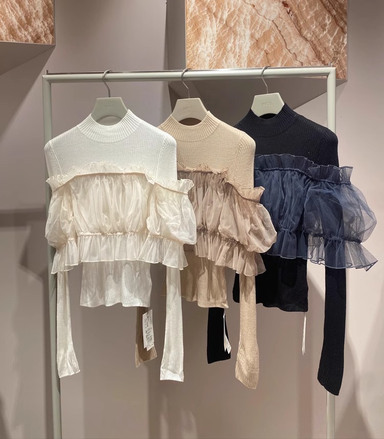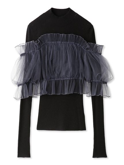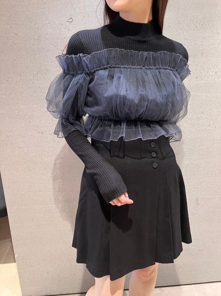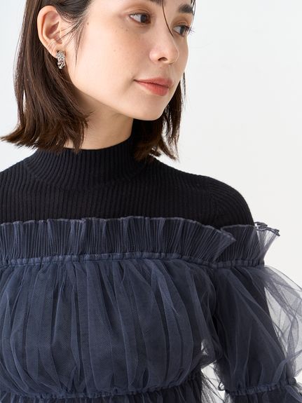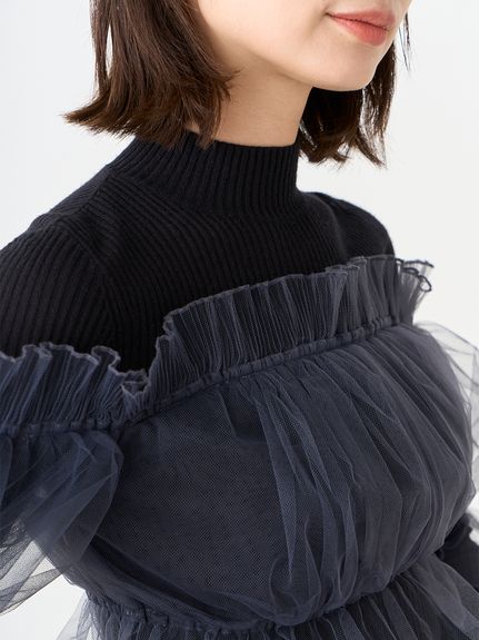 【チュールをドッキングした技ありニットなら1枚で簡単に着映え】