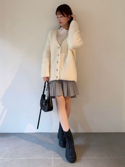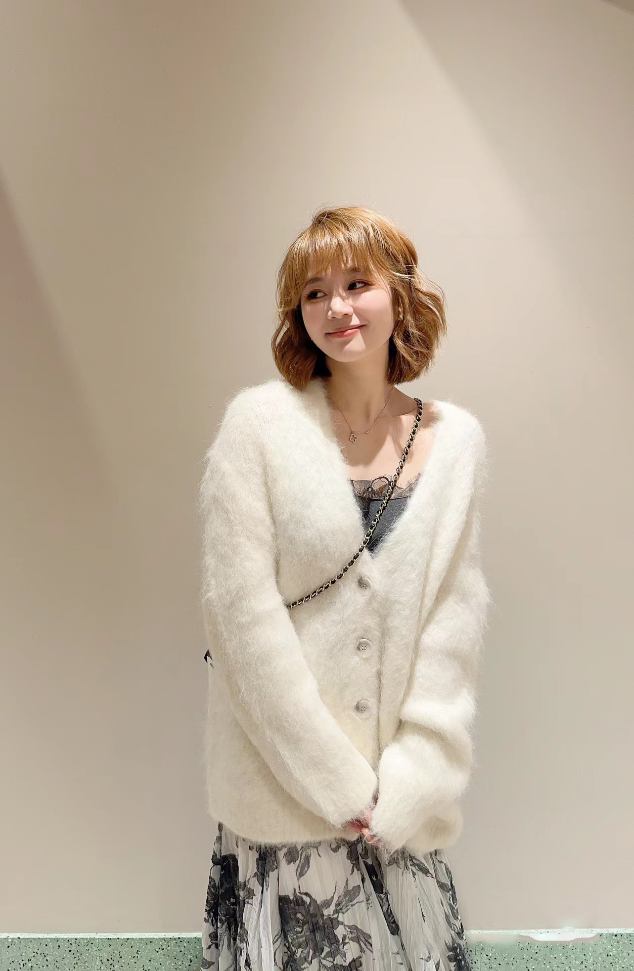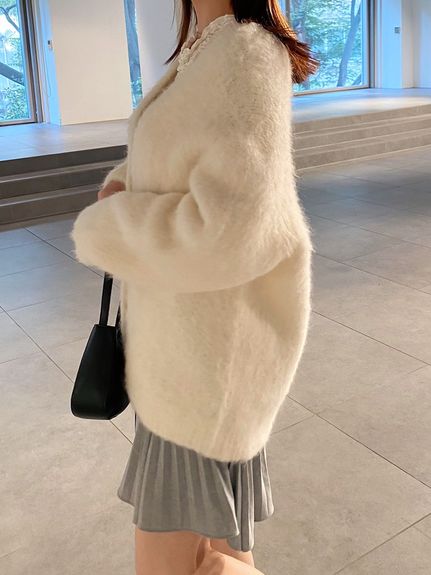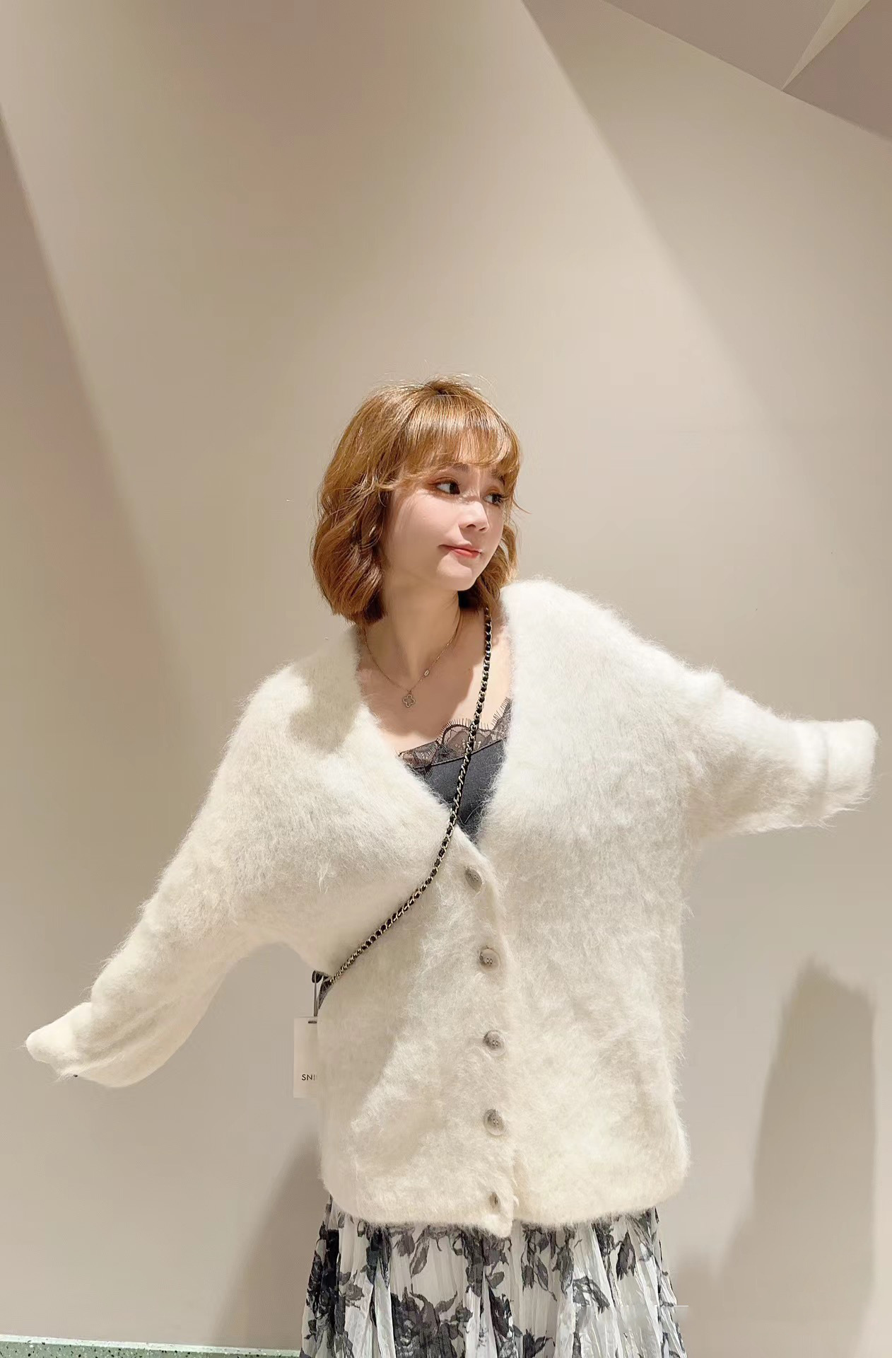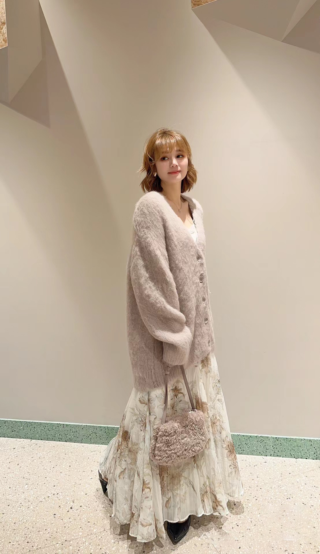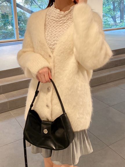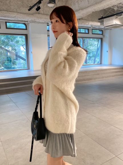 【思わず触れたくなる、ふわふわのミドルカーデはアルパカ混のリッチな一枚】