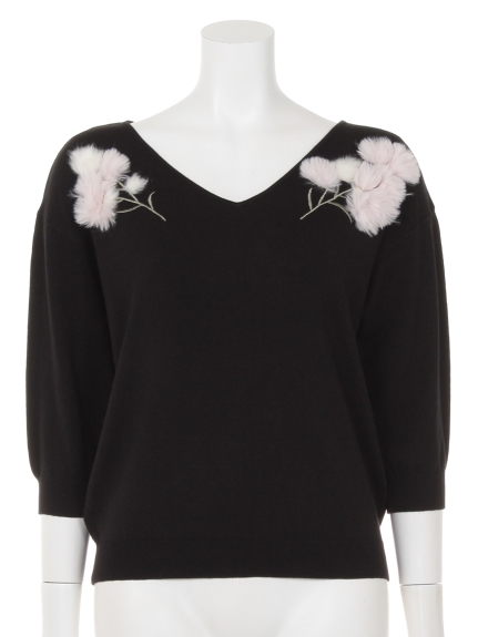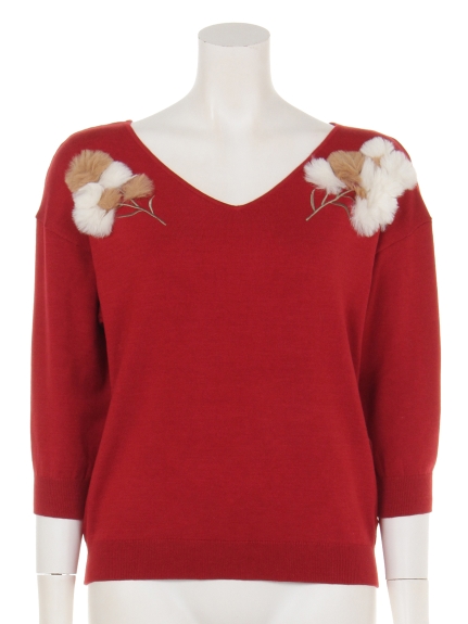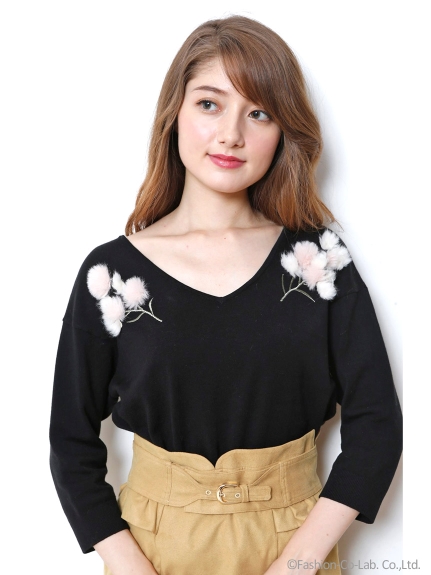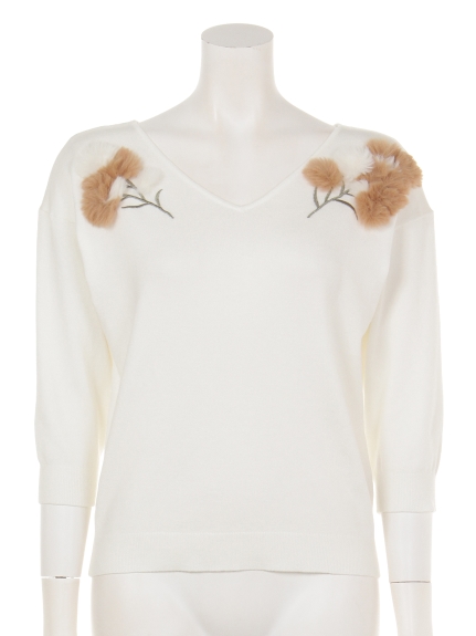 ふわふわとした素材をあしらった、リッチモダンなニットトップスです。鎖骨をキレイに映し出すVネックが、女性らしいヌケ感を添える好ディテール。個性を放つルックスは、周囲の視線を自然と集めそう。 素材 アクリル42%、レーヨン42%、ナイロン15%、ポリウレタン1%/ファー部分:ポリエステル100% サイズ表記 総丈 裄丈 袖口 バスト F 49cm 40cm 8cm 88cm