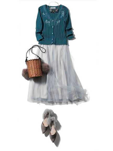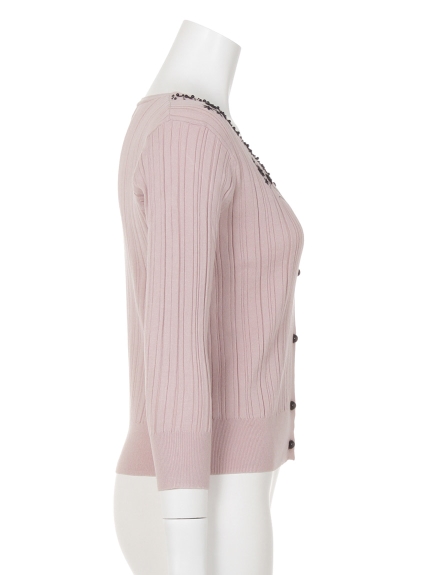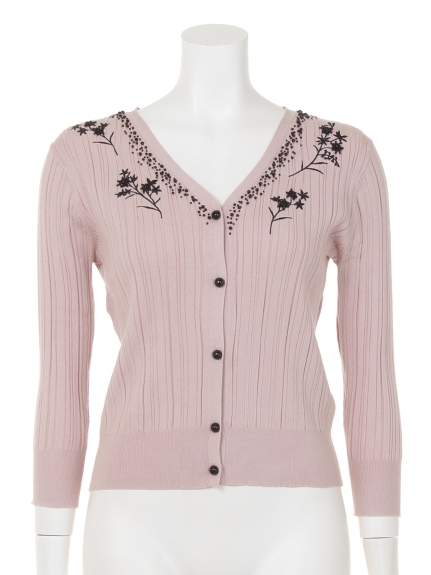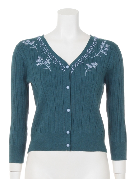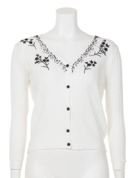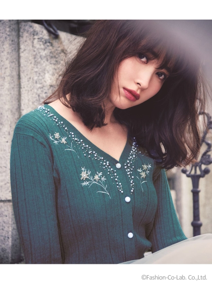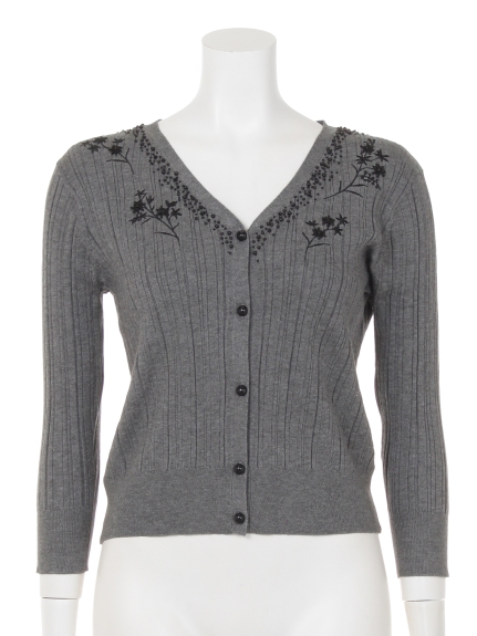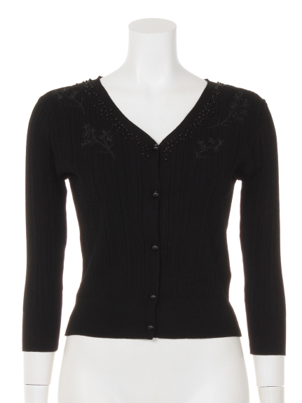 ビーズ刺繍をあしらって、愛らしいアクセントを添えたカーディガン。スッキリと開いたVネックが、顔まわりをシャープに見せてくれます。バランスの取りやすい、コンパクト丈なのも魅力。