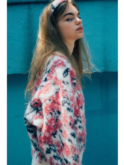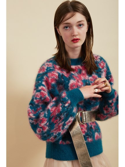 鮮やかなパターンが、コーディネートに彩りを注ぐジャガードニットプルオーバー。 色がはっきり出るようにジャガード編みに拘りました。 ふわふわと優しい起毛感で、暖かな着心地に。 ボリュームのあるシルエットを、袖やヘムに配した無地のリブがすっきりと引き締めます。 サイズ表記 総丈 裄丈 袖口 バスト F 58.5cm 81.5cm 8.5cm 122cm 素材 羊毛52%、アンゴラ26%、ナイロン22%