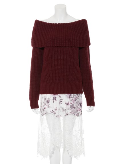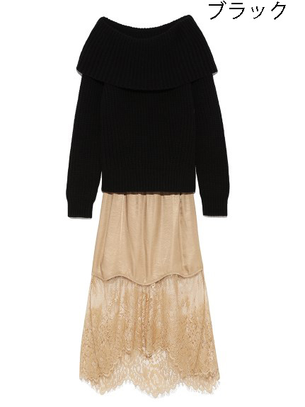 ざっくりニットと総レースのコンビネーションで仕上げた、ワンピース風セットアップです。