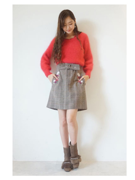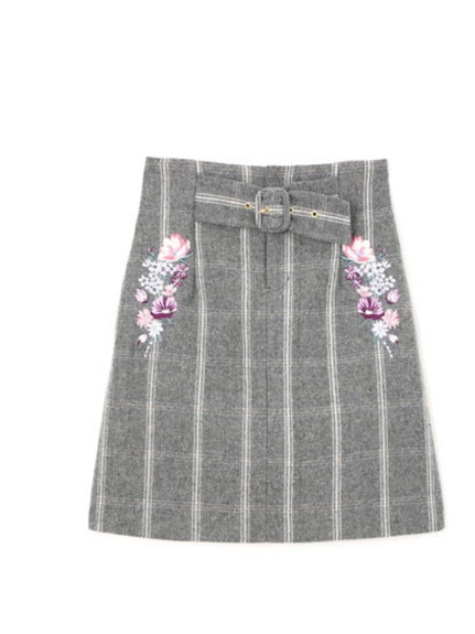 今年らしいチェック×刺しゅうがマッチした台形スカート!トレンドおじチェックにキレイなカラーブーケ刺しゅうが施された目を惹くデザイン。ハイウエストにベルト内蔵でスタイルアップを狙える膝上丈です。単品はもちろん、同シリーズのジャケットとセットアップも対応しています。※裏地・ポケ・後ろファスナー付き※商品の撮影はサンプルで行っている為、カラーやサイズ等に変更がある場合がございます。予めご了承ください。 ※人物着用の画像は、光の当たり具合や撮影環境により、色味が違って見える場合がございます。正しい色味は物画像または、トルソー画像の色味をご参照ください。