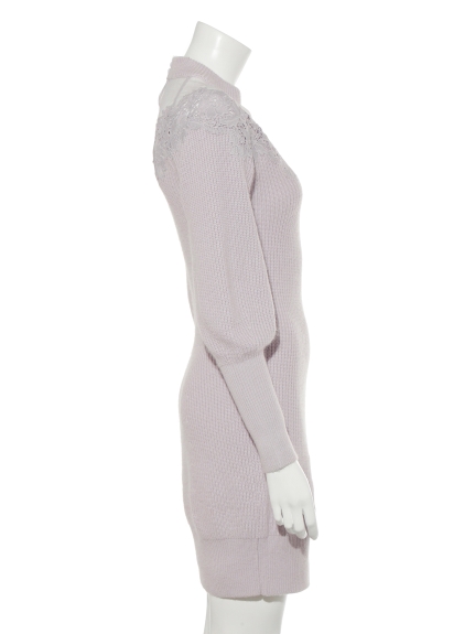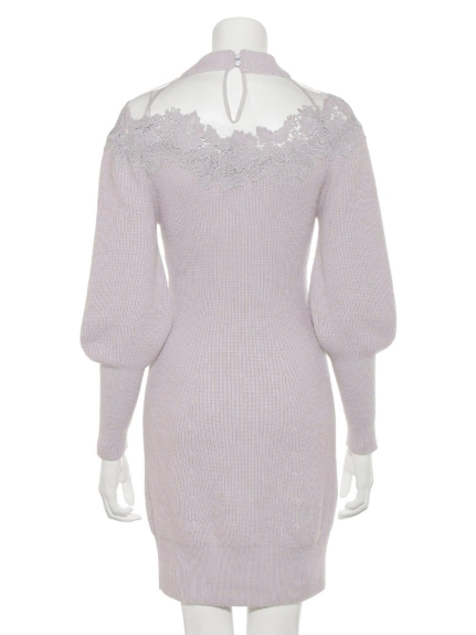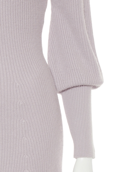 肌触りのよいニットワンピースは、襟元をほんのりハイネックでモードに、袖は長めのリブ×パフデザインでこなれ感を高めました。