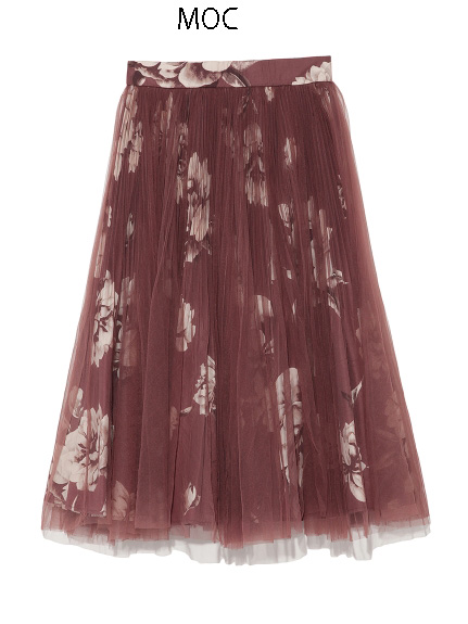 プリント生地とチュールの双方にプリーツ加工を施し、より立体的でふんわりとしたシルエットが魅力に。