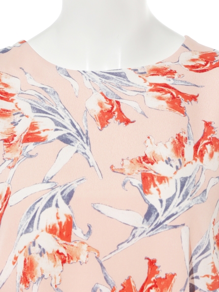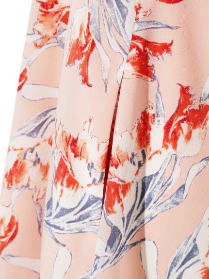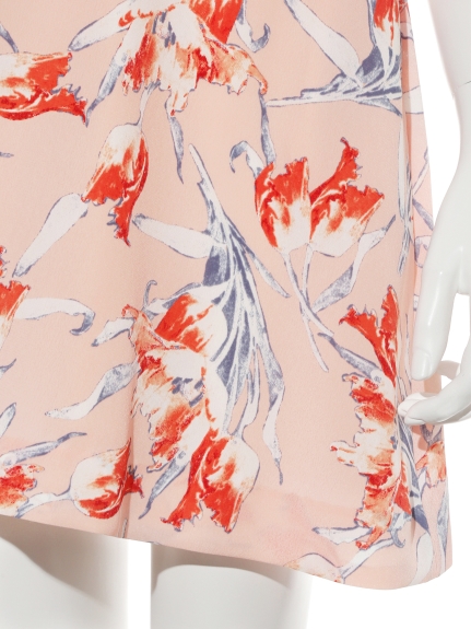 オリジナルのチューリップパターンをしなやかなジョーゼットにプリントしました。落ち感がよく、しなやかできれいめに映えるので、幅広いシーンに役立ちます。ミニマルなAラインシルエットのワンピースは、ニュアンスのあるチューリッププリントが主役。フラワープリントといえど、甘すぎず、エレガントな雰囲気です。ポイントは肩のラインに配したカッティング。控えめな肌見せも大人らしい気分を演出します。美しいカラーを味方に、幸福感溢れる装いを。