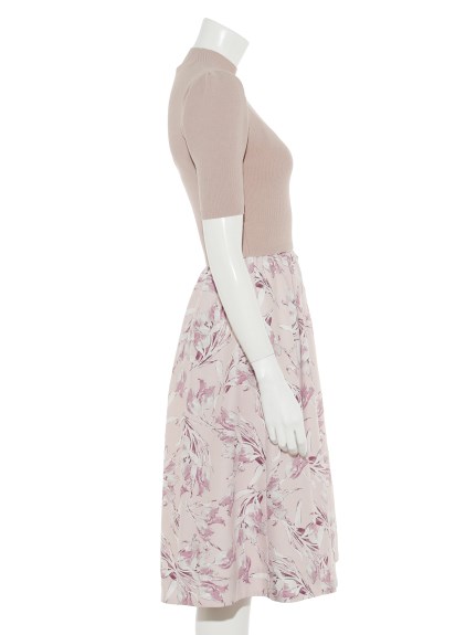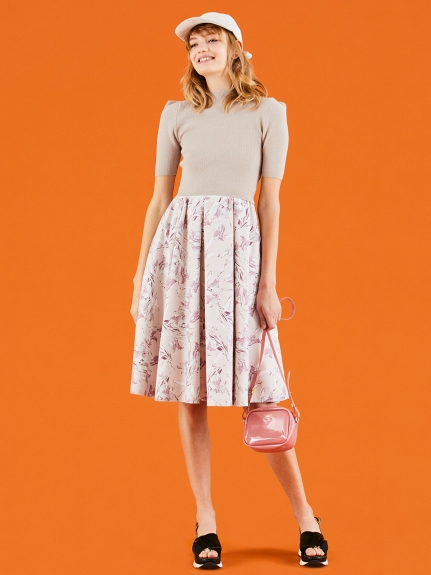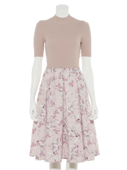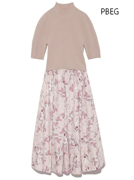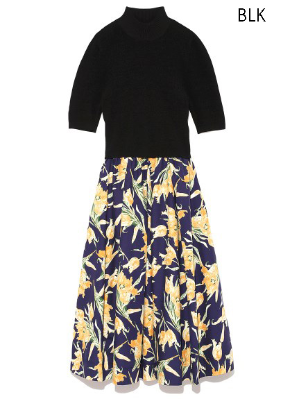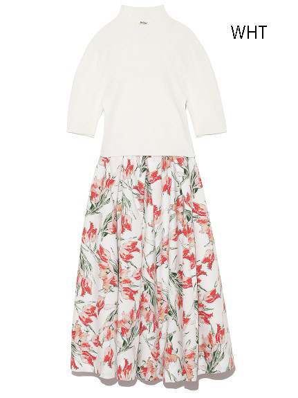 チューリッププリントニットコンビワンピース