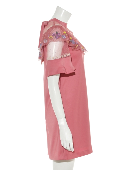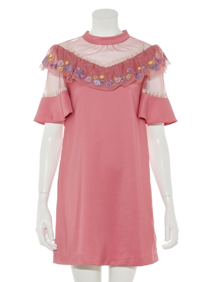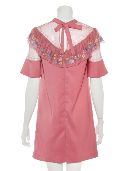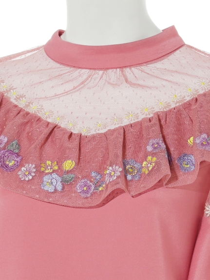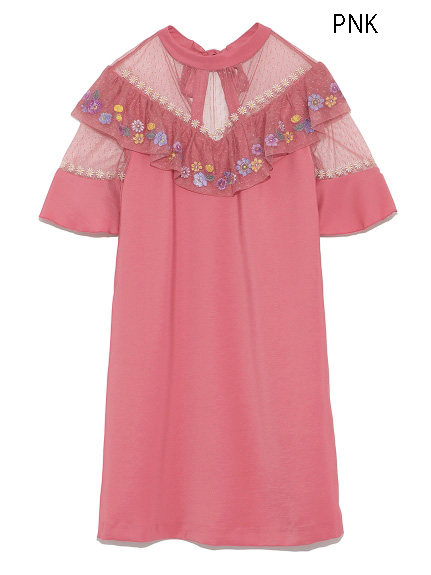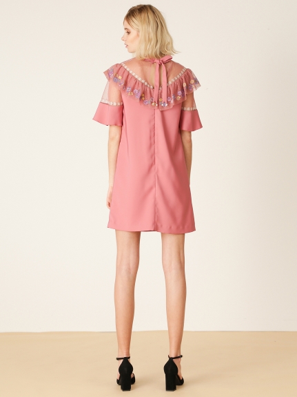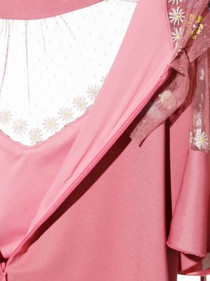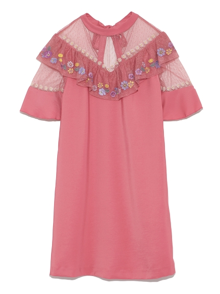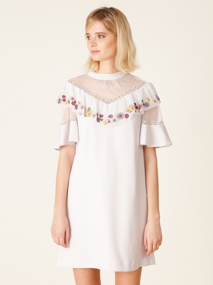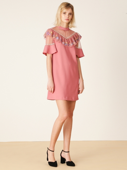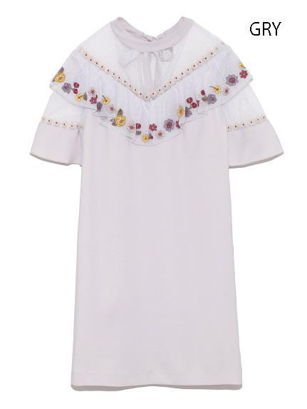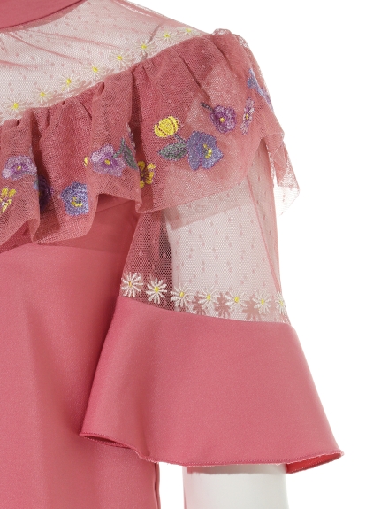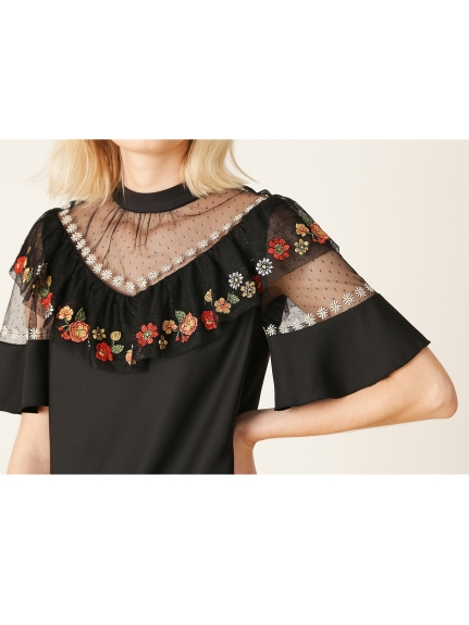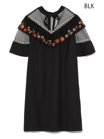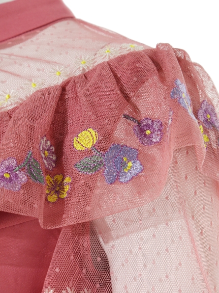 肌の透け感を楽しめるチュールにフラワー刺繍をたっぷりと詰めこんで、レトロロマンティックに着こなして。