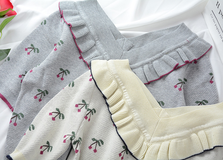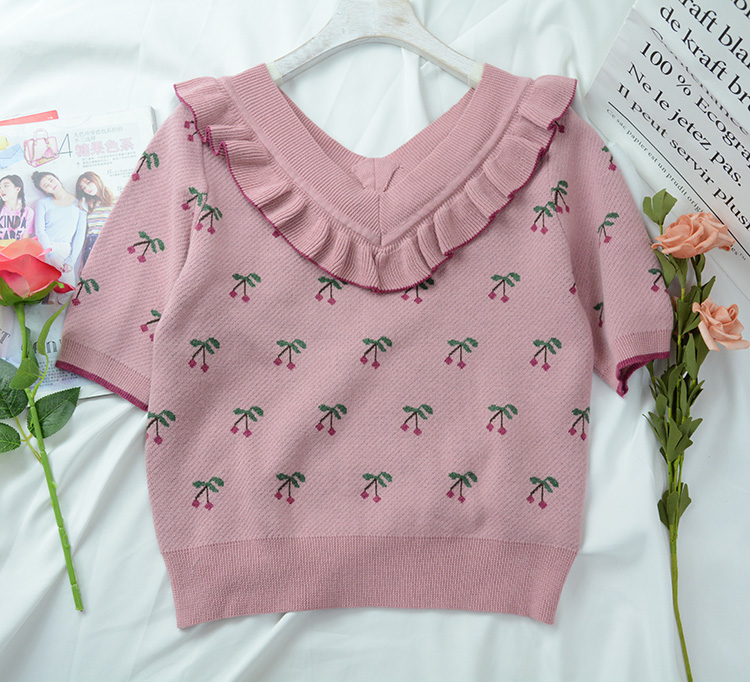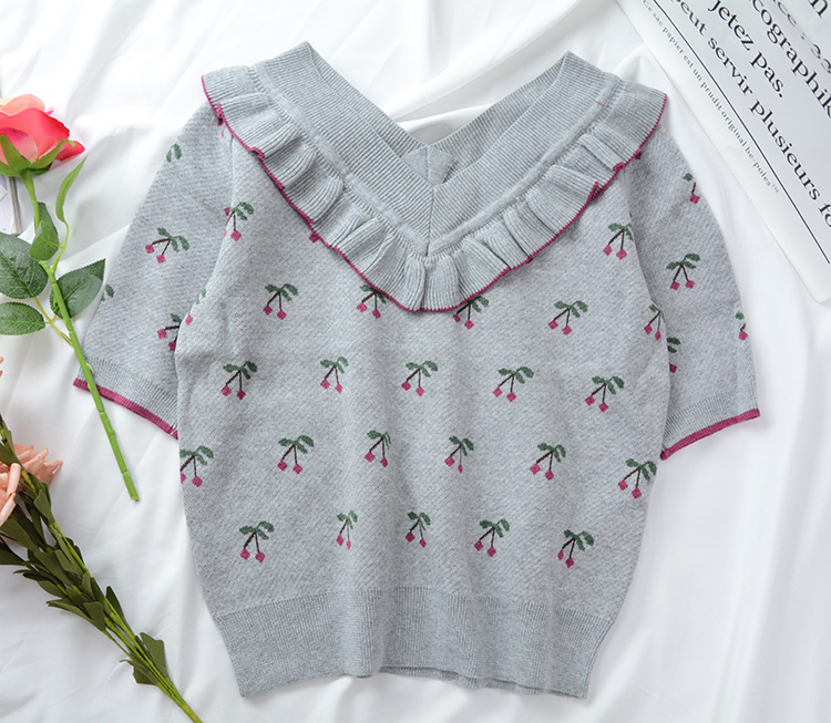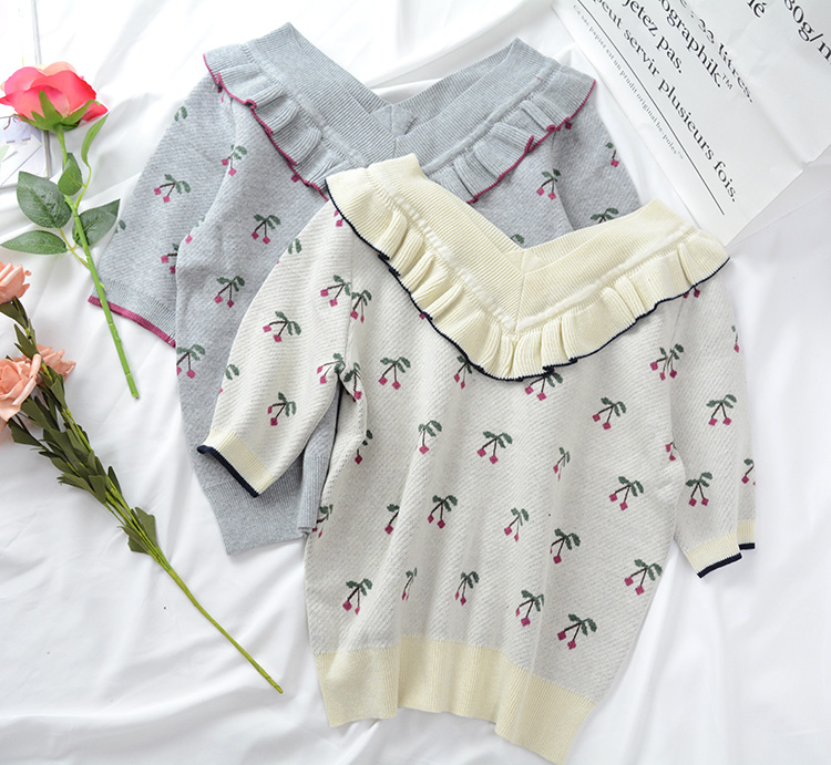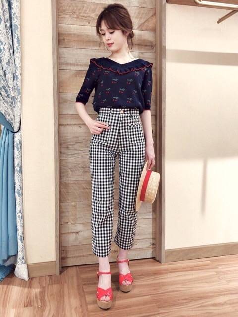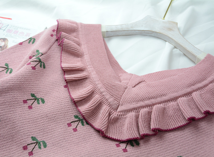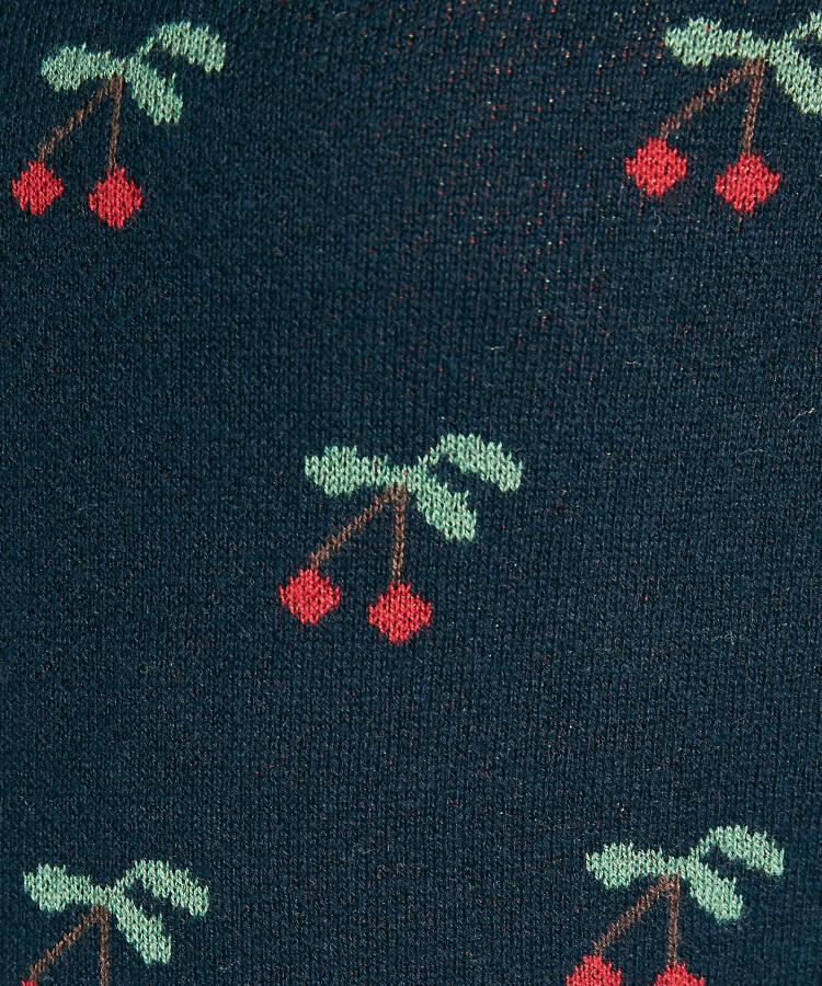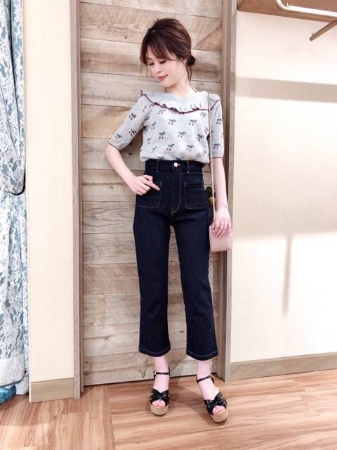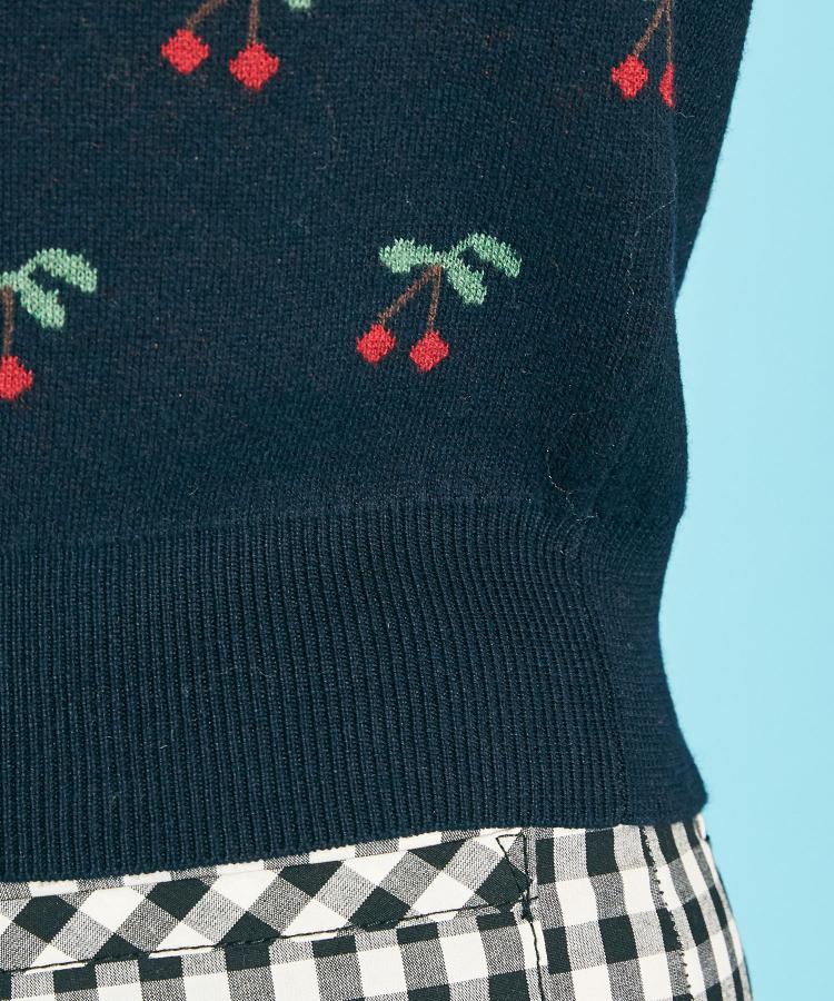 キュートなチェリー柄を散りばめたニットプルオーバー。ネックにはフリルをあしらって甘さを引き上げています。コンパクトなシルエットですっきりと着こなせ、さまざまなボトムスとのコーディネートを楽しめるのも魅力です。 サイズ 着丈 肩幅 袖丈 バスト(1周) F 50 33 28 84 素材 レーヨン60% 綿40%
