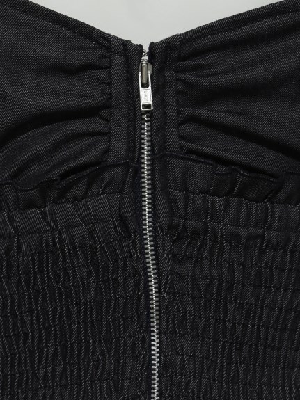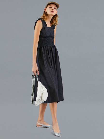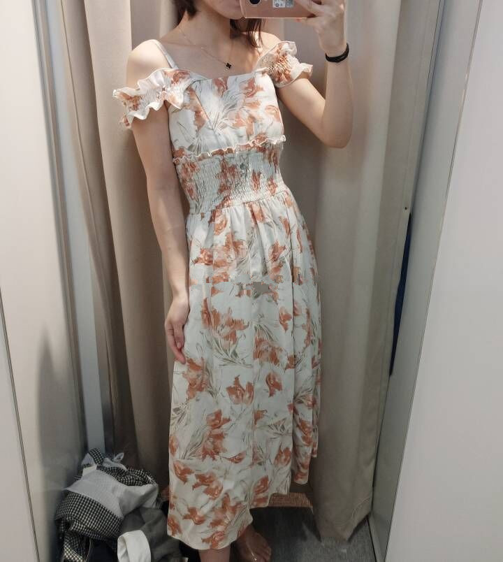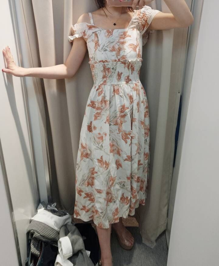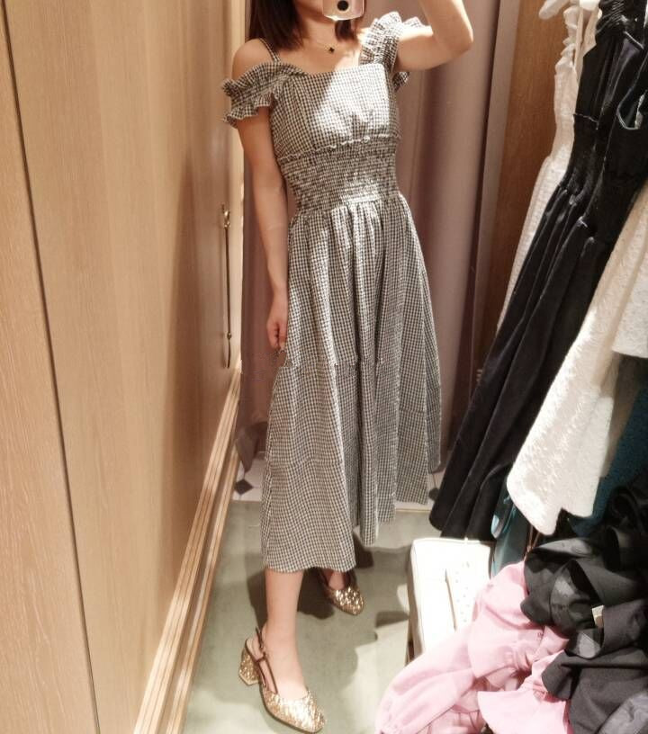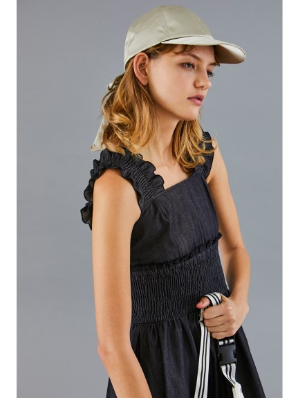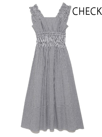ウエストにゴムシャーリングをあしらった、着るだけでメリハリシルエットが叶うワンピース。タウンにはもちろん、リゾートにも似合うリラックス感あるデザインです。肩のフリルストラップを横に落とすと中からは華奢なストラップが出現。ルーズに両方落としたりとアレンジ自在に使えます。ひざの隠れる上品な着丈で、大人らしく。