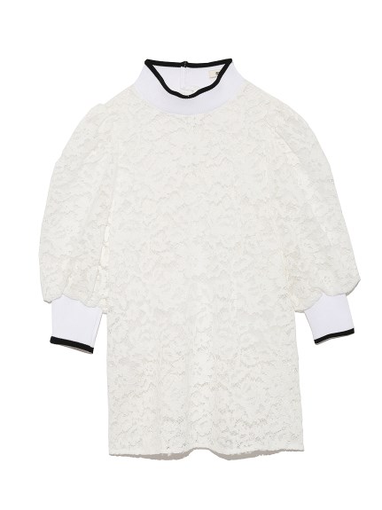 大ぶりのフラワーパターンが浮かぶ、上品レースを贅沢に使用したブラウス。ネックラインと袖口には、スポーティーな雰囲気香るリブニットを配して、アクセントに。